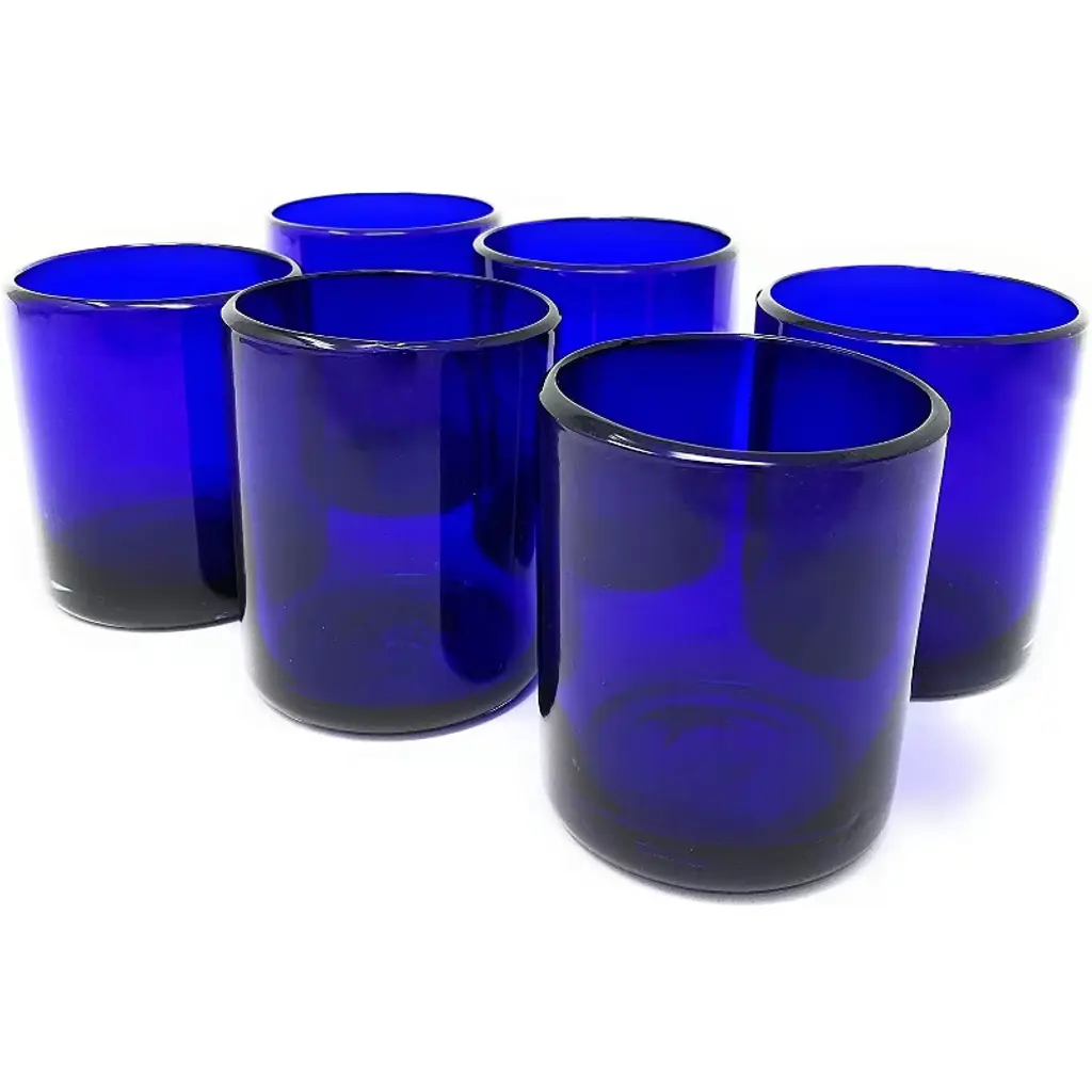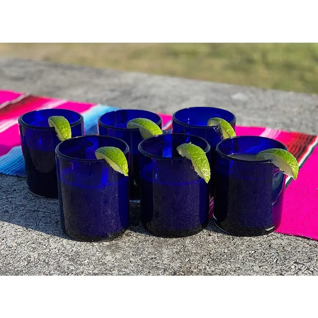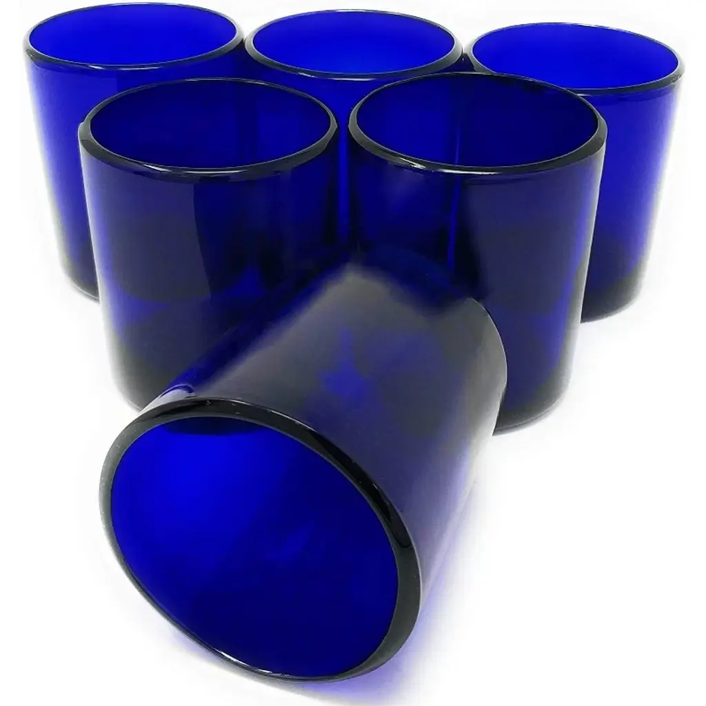 Dos Sueños Mexican Hand Blown Tumblers - Pure Cobalt Design - 10oz - Set Of 6