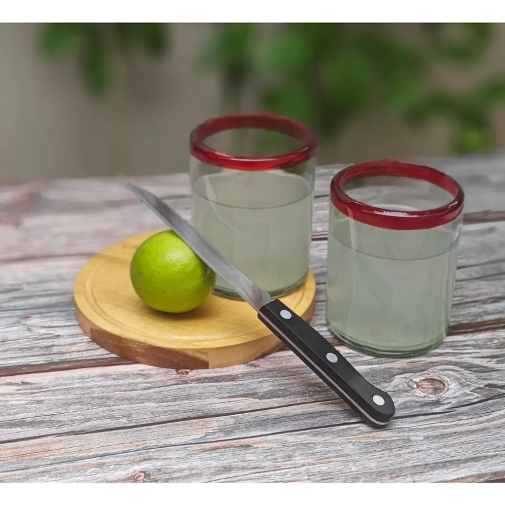Dos Sueños Mexican Hand Blown Tumblers - Red Rim - 10oz - Set Of 2
