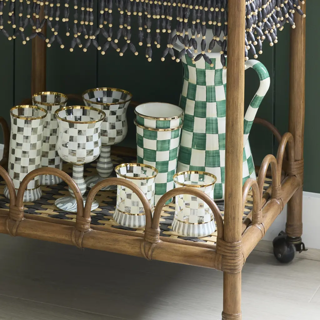 You'll be sipping in signature style thanks to our Emerald Check 20 Ounce Tumbler. Add one to the powder room, a pair on your bedside tables, and a stack in the kitchen so this charming cup is always within reach. The simple elegance of this color-dragged Emerald Check pattern makes it part of a useful gift set with an Emerald Check Pitcher.
