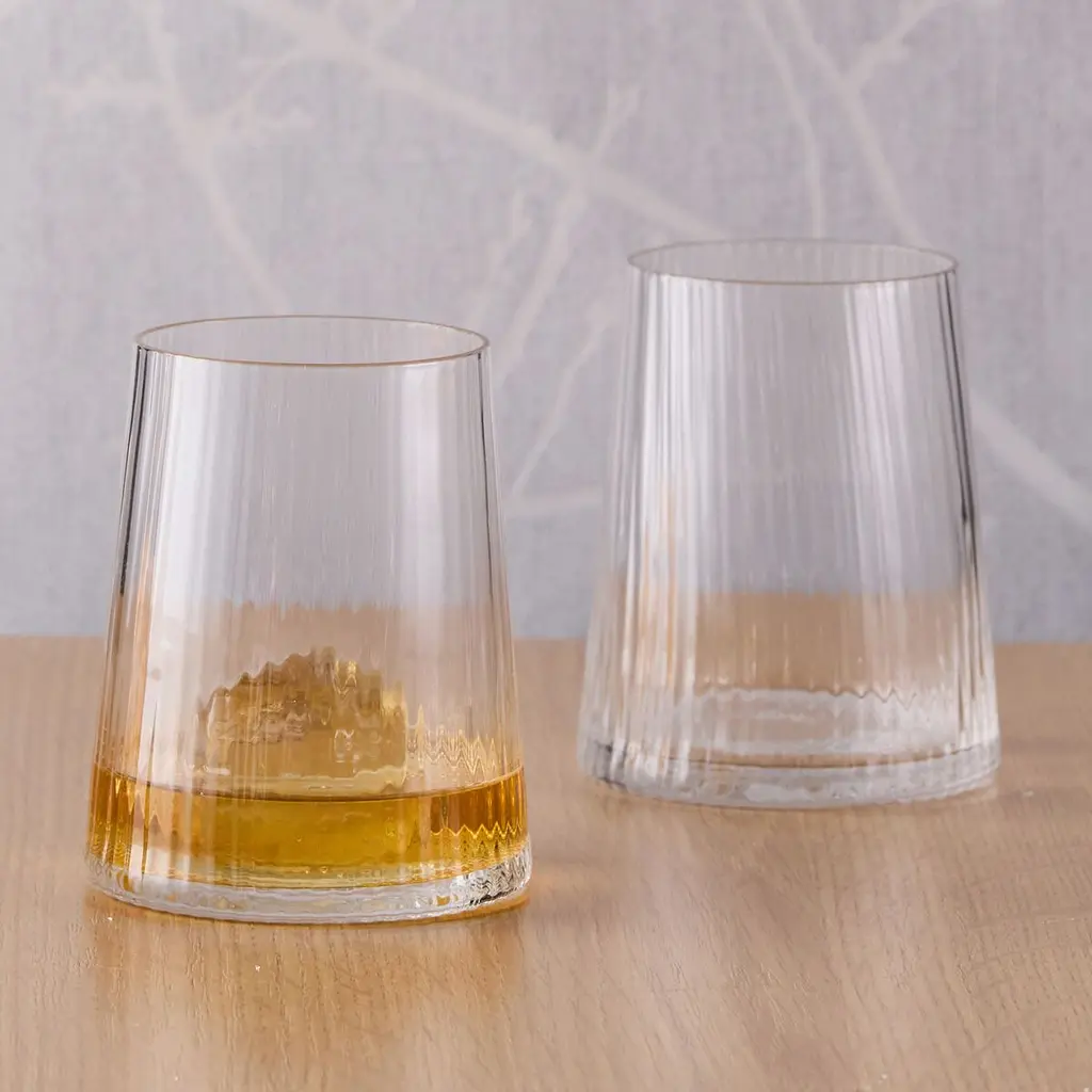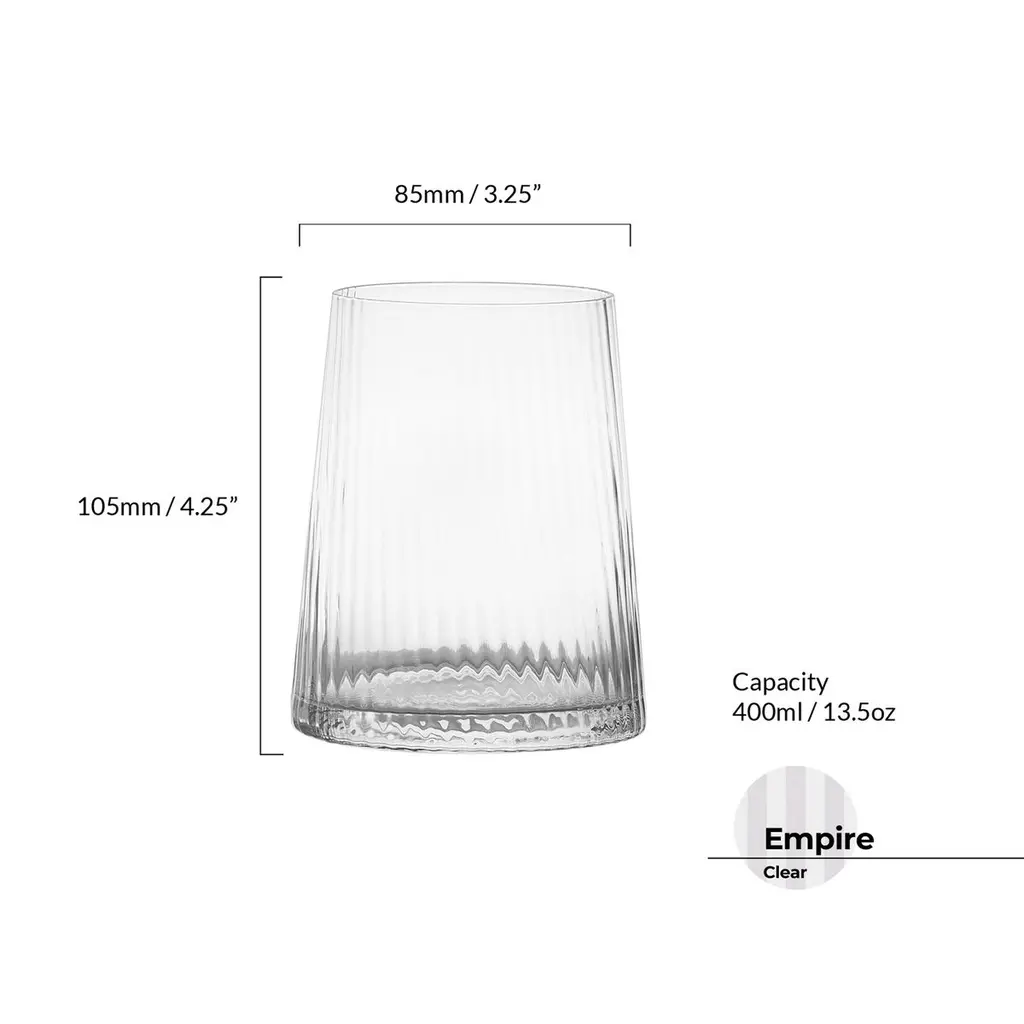 Enjoy your favorite drink in style with Empire Double Old Fashioned Tumblers. Handcrafted by skilled artisans, each tumbler has a contemporary shape with rounded corners and tapered sides. The fine optic running up and down the bowl adds a touch of sophistication. Packaged in a smart gift box, this range includes a full suite of glassware to cater to all your entertaining needs.