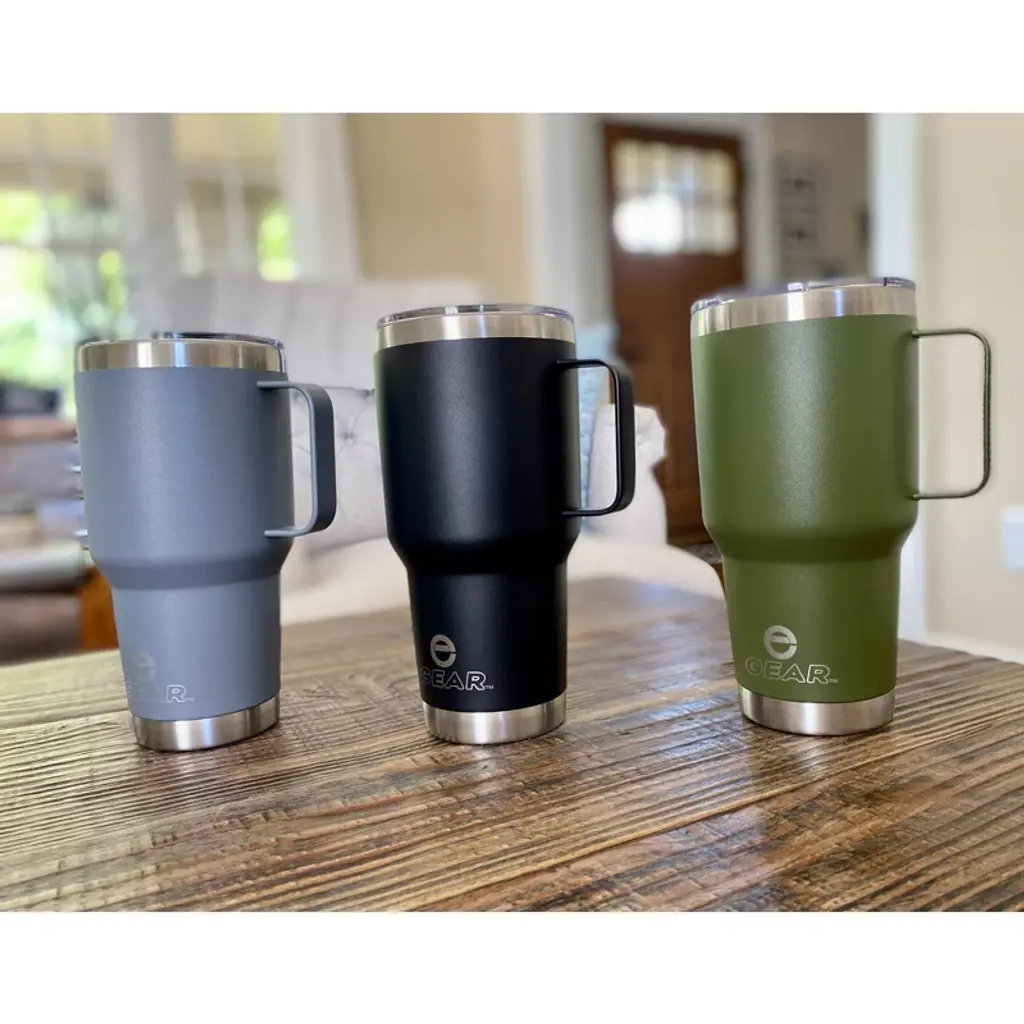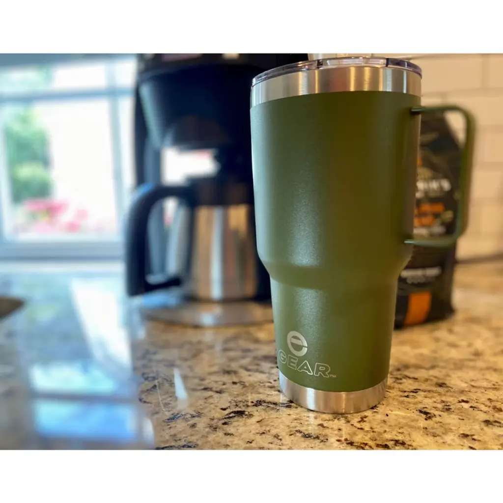 UNIQUE LIDS - Our 30 oz Tumblers with Handle come with a Magnetic Slider Lid to help lock in your favorite beer, coffee, or beverage of choice. ECO-FRIENDLY – Help save the planet, and stop adding plastic bottles and cups to our landfills. Use a washable and reusable alternative for your daily beverages. These Tumblers are BPA-free, and sweat resistant. GREAT FOR HOME OR OUTDOORS - Our Enthusiast Gear Tumblers come with a durable powder coated exterior coat of color. So you’ll look great anywhere. Stay refreshed and hydrated no matter what adventure life takes you on. Take our mugs to the mall, park, pool, camping … to parties or tailgates … on vacations, road trips or cruises … or just sitting around your backyard firepit. SLEEK & LIGHTWEIGHT - Our Tumbler stands 7 3/4” inches tall and has a lip diameter of 4” inches. All E Gear Tumblers are sized to fit in standard sized cup holders.