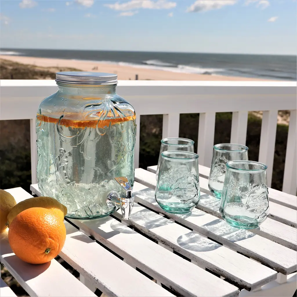 Sustainable and eco-friendly, this set of 4 Euro Essential Bara Collection tumbler inspires talk of modernity, while the embossed designs give them a warmly familiar vintage quality. The feel of organic elegance with their shape and natural green color, and the ideal size for so many of your favorite drinks will make these the most popular glass in your household. Contains 100% recycled glass certified to the Global Recycling Standard (GRS). GRS certified products specify percentage of recycled materials and meet high social, environmental, and chemical requirements from the recycler to the finished product. Product Features:Dimensions:3.5 in. x 3.5 in. x 4.3 in. / 14 oz Capacity