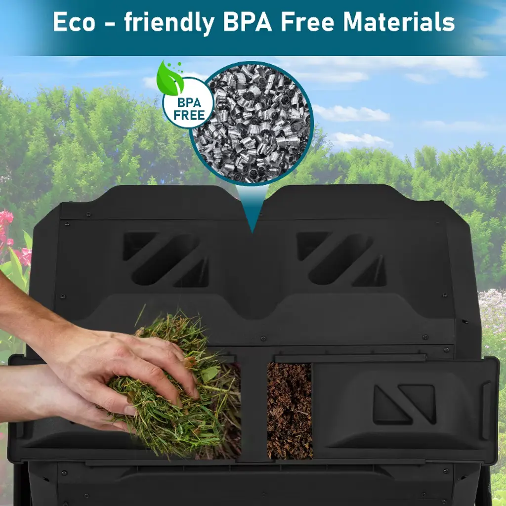FDW Compost Bin is a robust and high-quality composting option for outdoor use. Composting kitchen leftovers, yard waste, and other organic wastes is made possible by its spacious 43 gallon capacity. Its durable build and user-friendly design make it an effective and practical solution to cut waste and produce compost that is rich in nutrients for your plant. To provide optimal aeration and speedy and efficient decomposition, the bin has a revolving drum. Its enclosed construction also lessens the attraction of pests and helps to regulate odors.