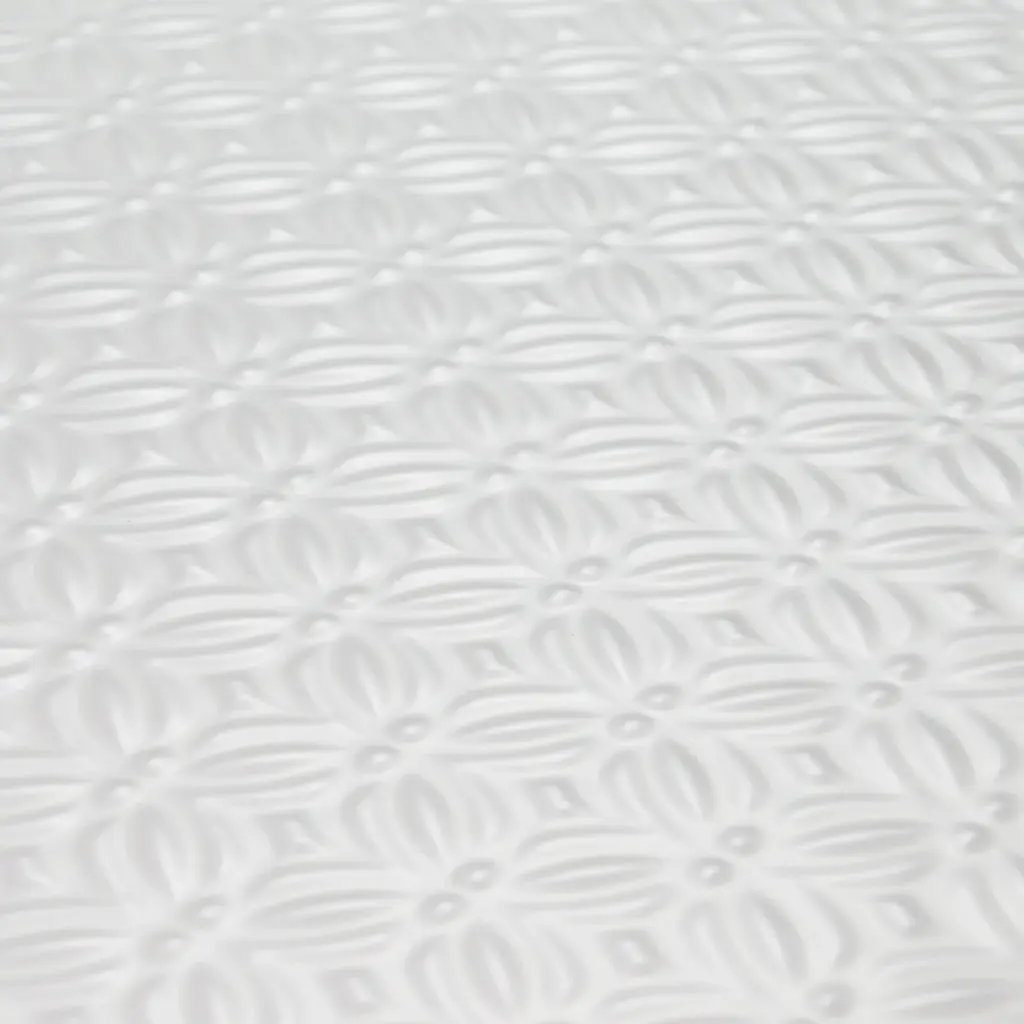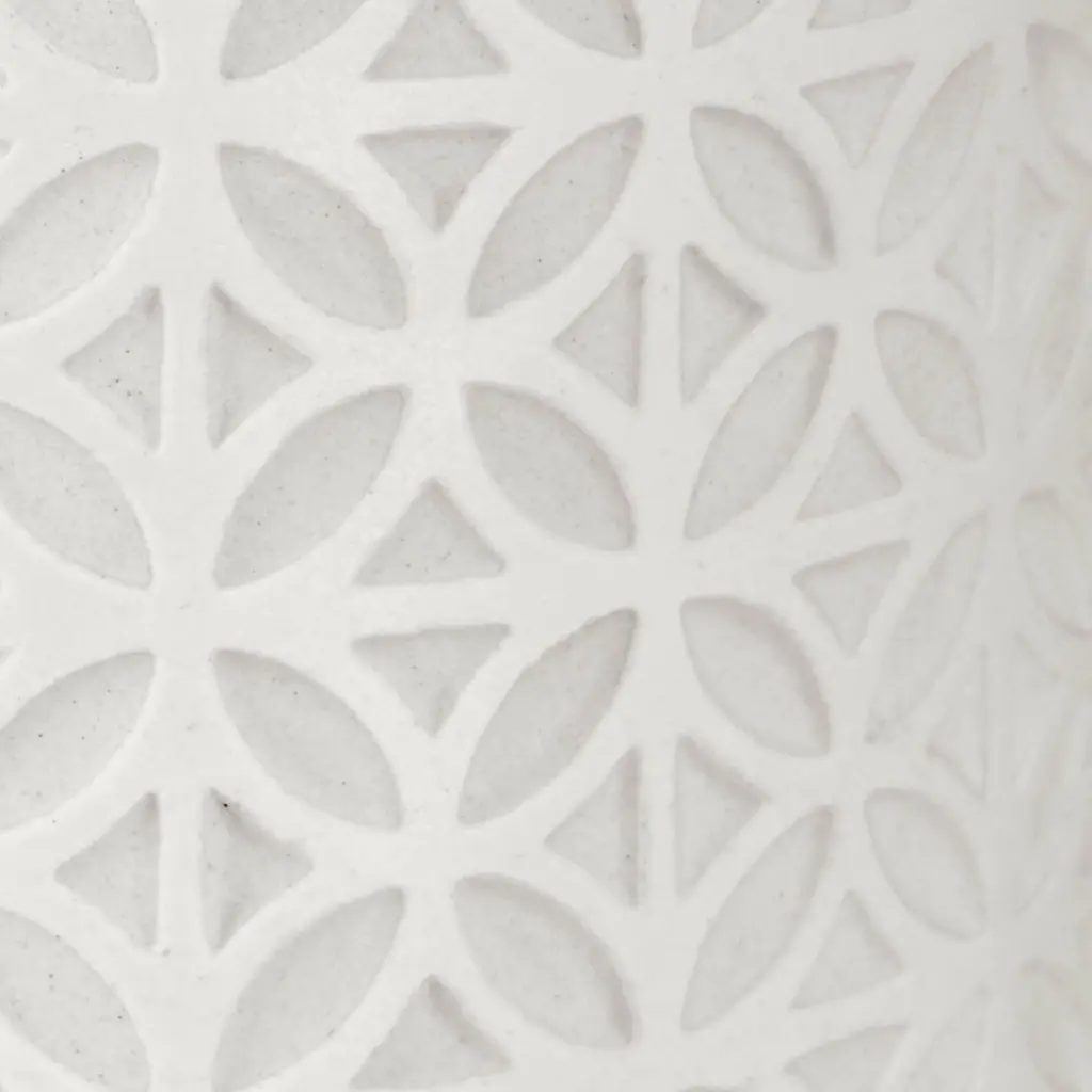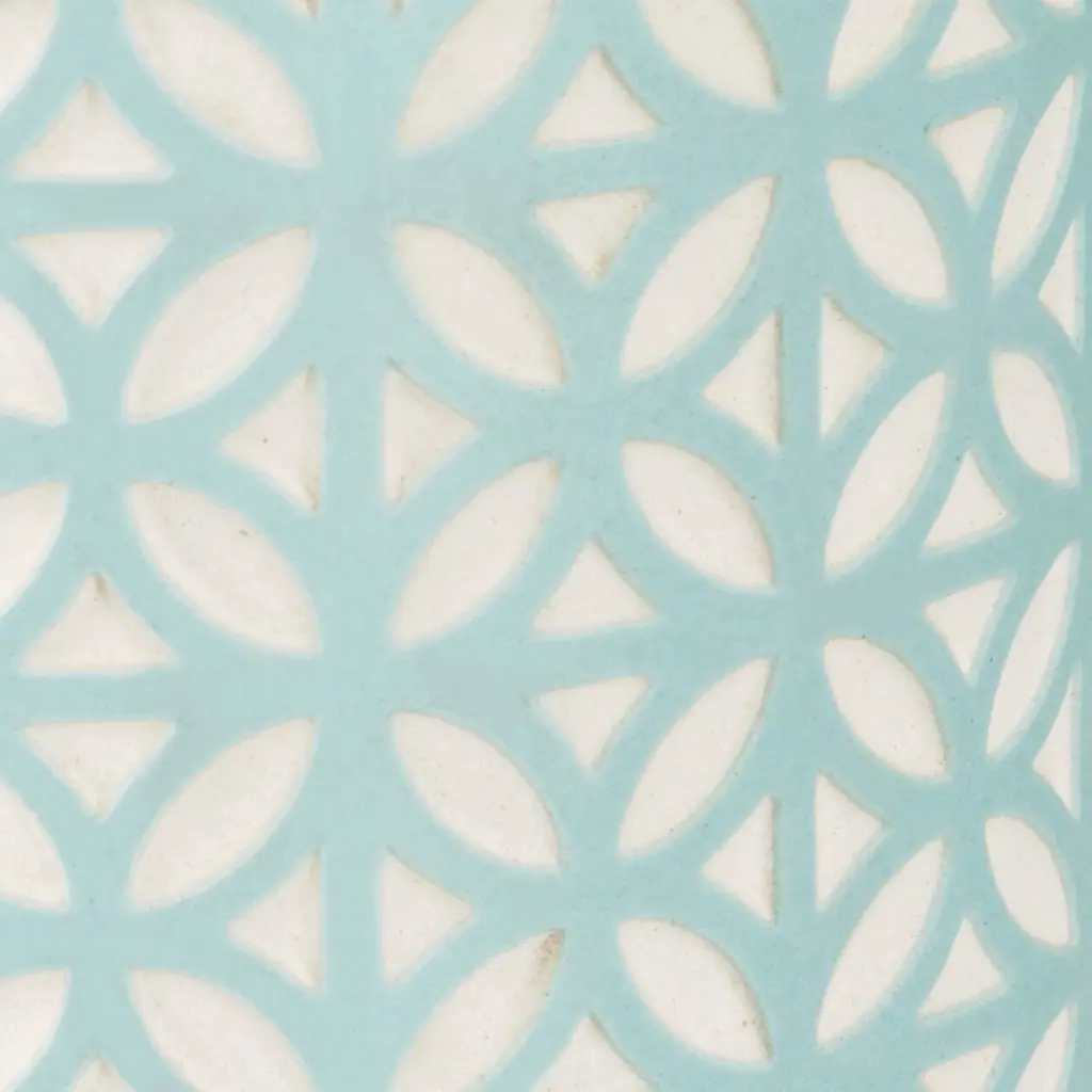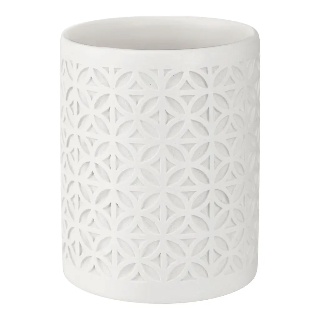 The intricate textural detailing and soft finish of the Felix Bath Accessories bring a serene and peaceful feeling to your spa-like bathroom. The Tumbler, Toothbrush Holder, Soap Dish and Lotion Pump are made of sandblasted ceramic for a distressed finish in a textural diamond motif. The complementary Wastebasket is made of embossed resin also in a textural diamond motif. Each piece is sold separately. Available in white, aqua blue and blush pink. Hand wash.