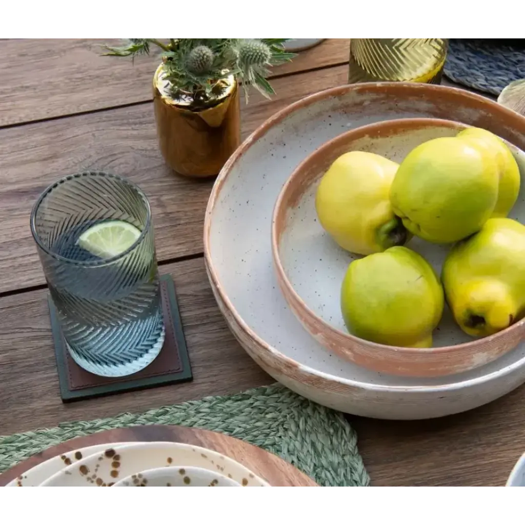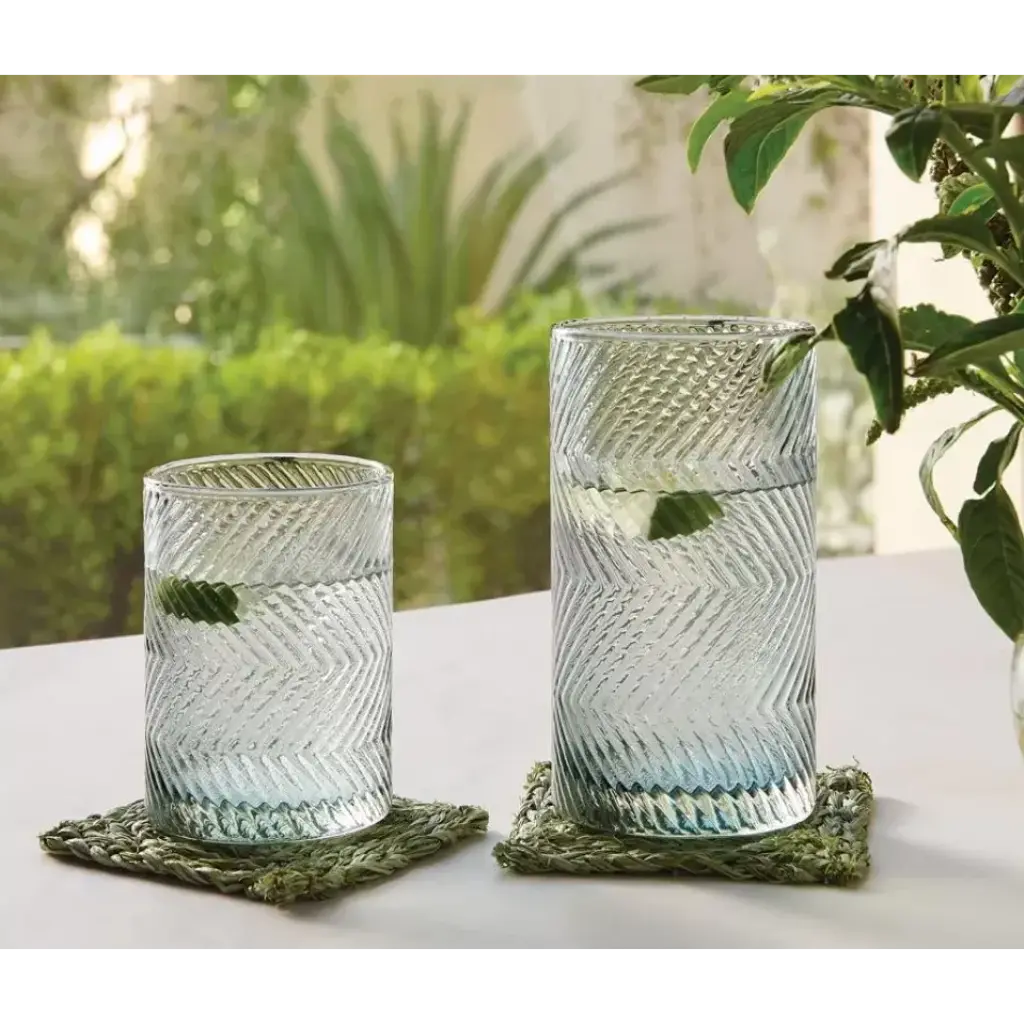 Rows of contrasting twists gives our Finley glassware collection a cool, optical effect. Blue Pheasant's products are handmade with care by artisans using natural materials. They are not mass produced, so variation between products should be expected, and this is why we love them! It is these irregularities that makes Blue Pheasant what it is—a special brand whose collections are distinctly handmade, full of charm and originality you’ll never find in machine-made products.
