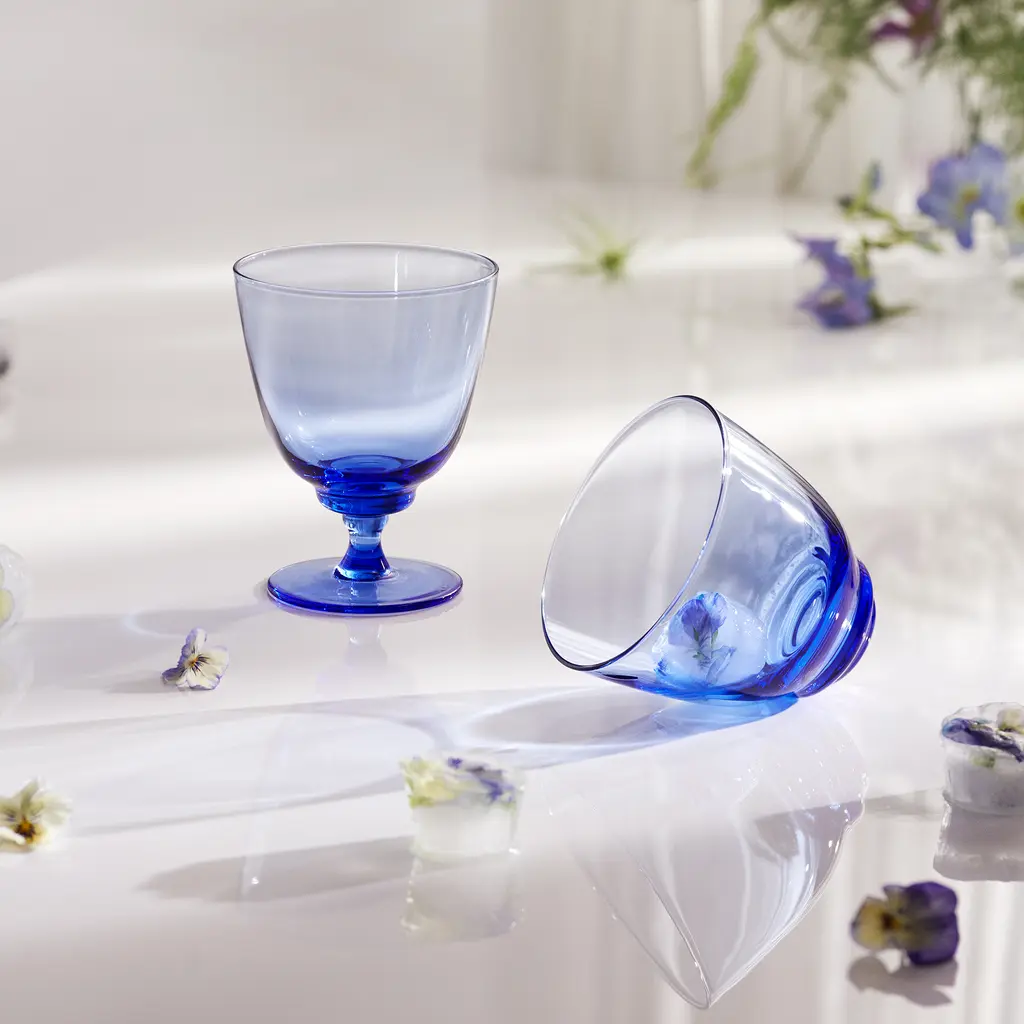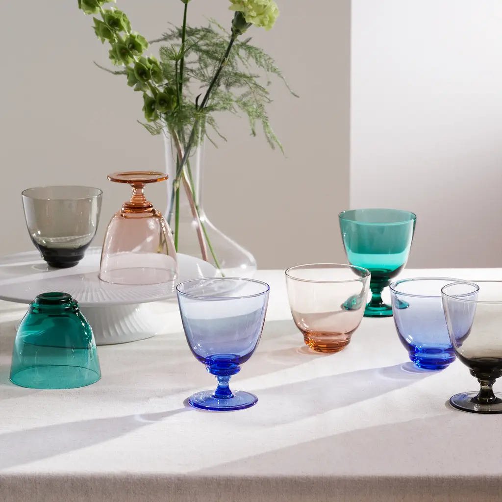 The Holmegaard Flow Colorful Glass Tumbler with Stem adds a refined touch to your table setting. This mouth-blown glass features a subtle wave pattern inspired by rippling water and stands gracefully on a delicate stem, combining practicality with elegance. Designed to hold 11.8 oz, it’s perfect for serving wine, bubbly drinks, or even water, making it a versatile addition to any occasion. Available in vibrant colors like Emerald Green, Champagne, Dark Blue, and Smoke, these colorful glass tumblers bring personality and charm to your drinkware collection. Part of the Flow Collection, each piece is unique, showcasing the artistry and craftsmanship behind Holmegaard’s designs.