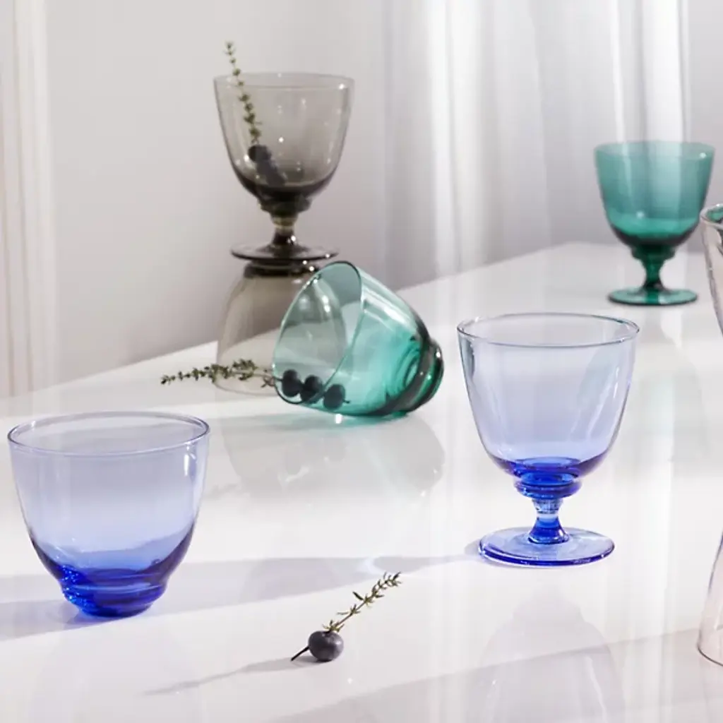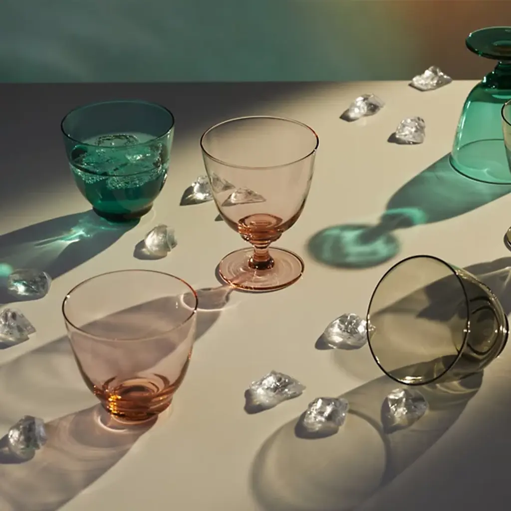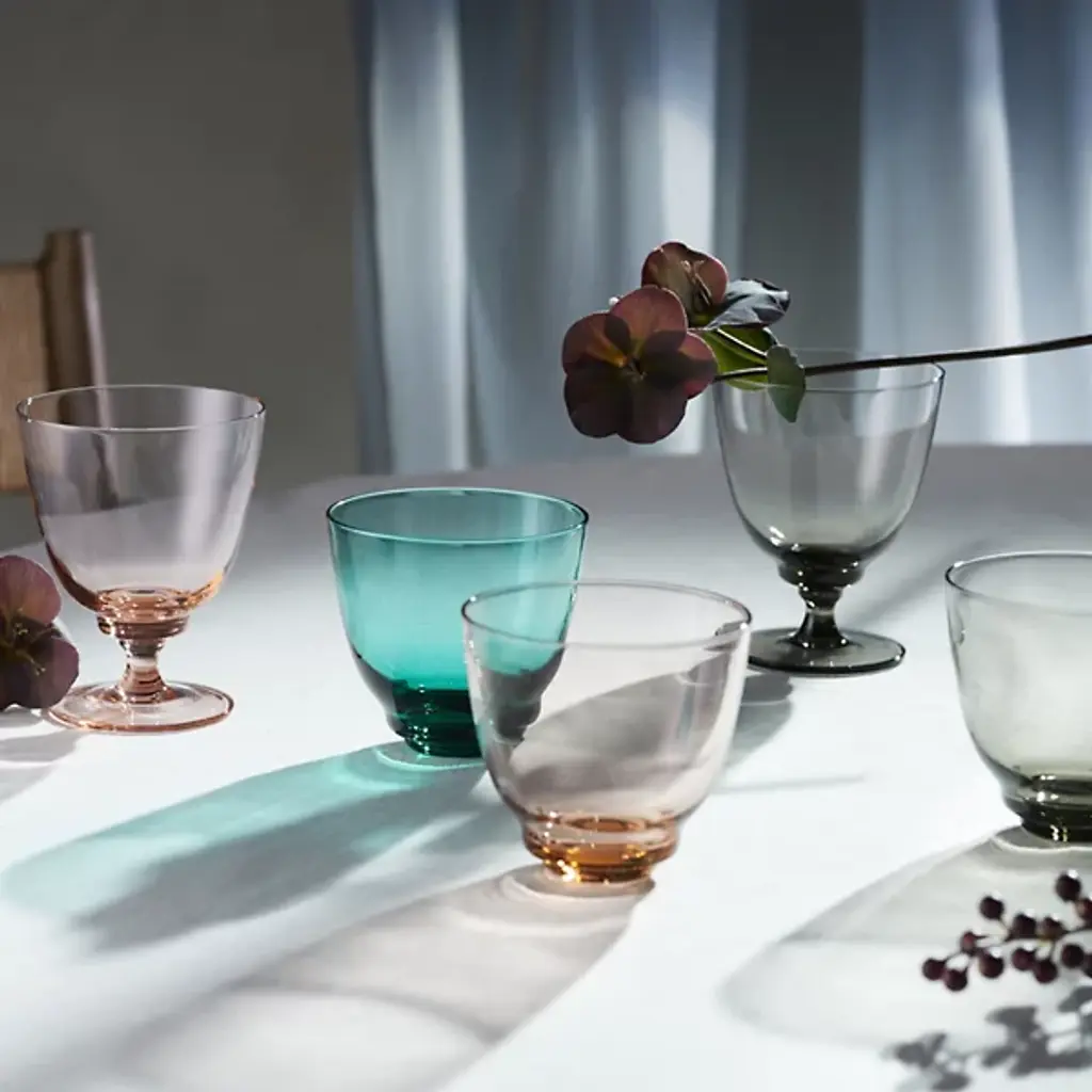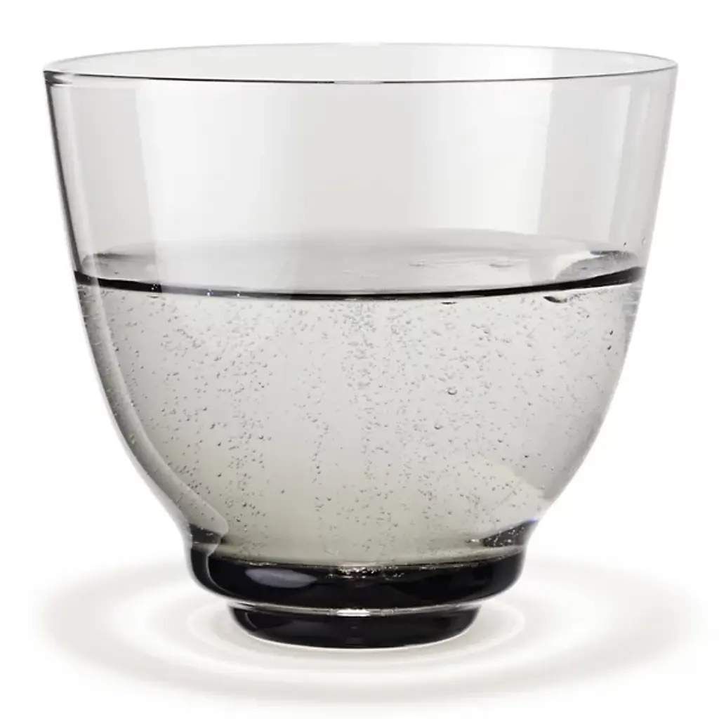 The Flow Glass Tumbler, Set of 4 from Holmegaard, embodies a philosophy of design that merges the custody of history with contemporary expression. Reviving archival forms of historic wine glasses, the piece reinterprets them with a simple conical curve that feels both familiar and new. Its mouth-blown glass narrows to a circular base distinguished by wave-style grooves, and its color becomes more intense at the base. Engraved with the Holmegaard at its center, each glass is a true work of art, and its everyday use becomes a dialogue between past and present.