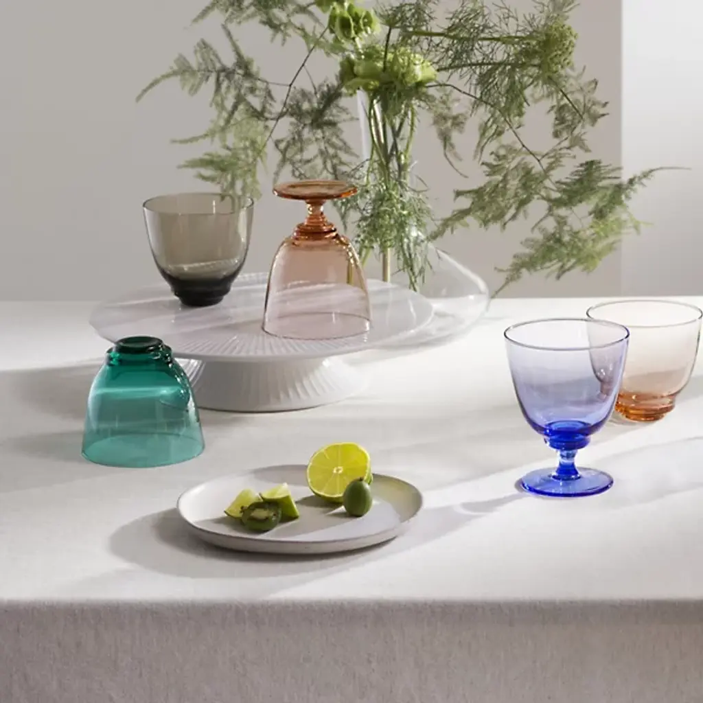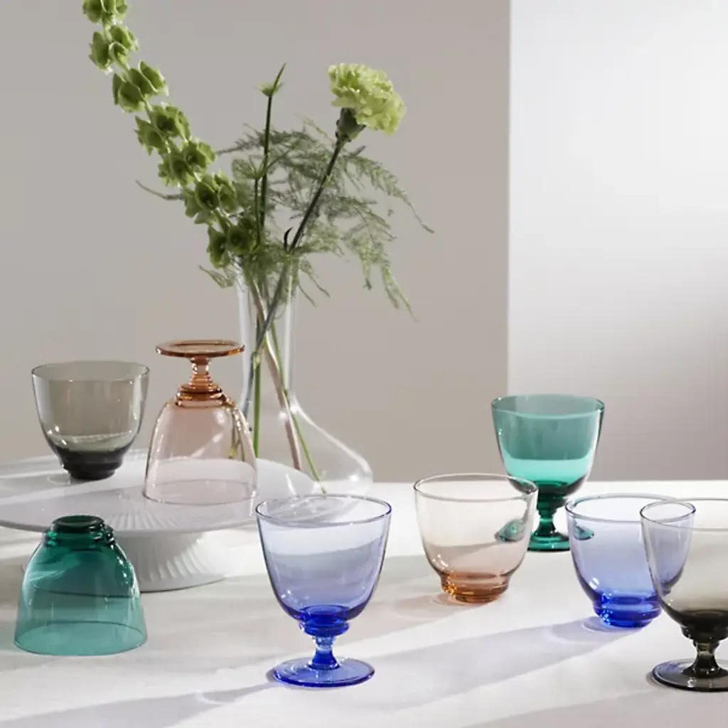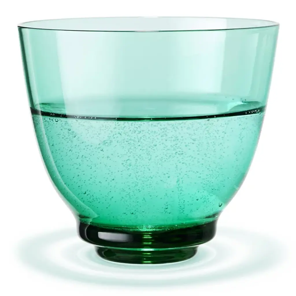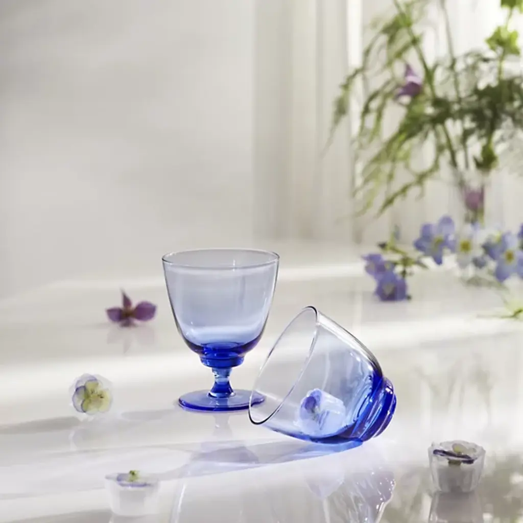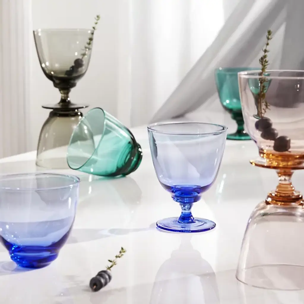 The Flow Glass Tumbler, Set of 4 from Holmegaard, embodies a philosophy of design that merges the custody of history with contemporary expression. Reviving archival forms of historic wine glasses, the piece reinterprets them with a simple conical curve that feels both familiar and new. Its mouth-blown glass narrows to a circular base distinguished by wave-style grooves, and its color becomes more intense at the base. Engraved with the Holmegaard at its center, each glass is a true work of art, and its everyday use becomes a dialogue between past and present.