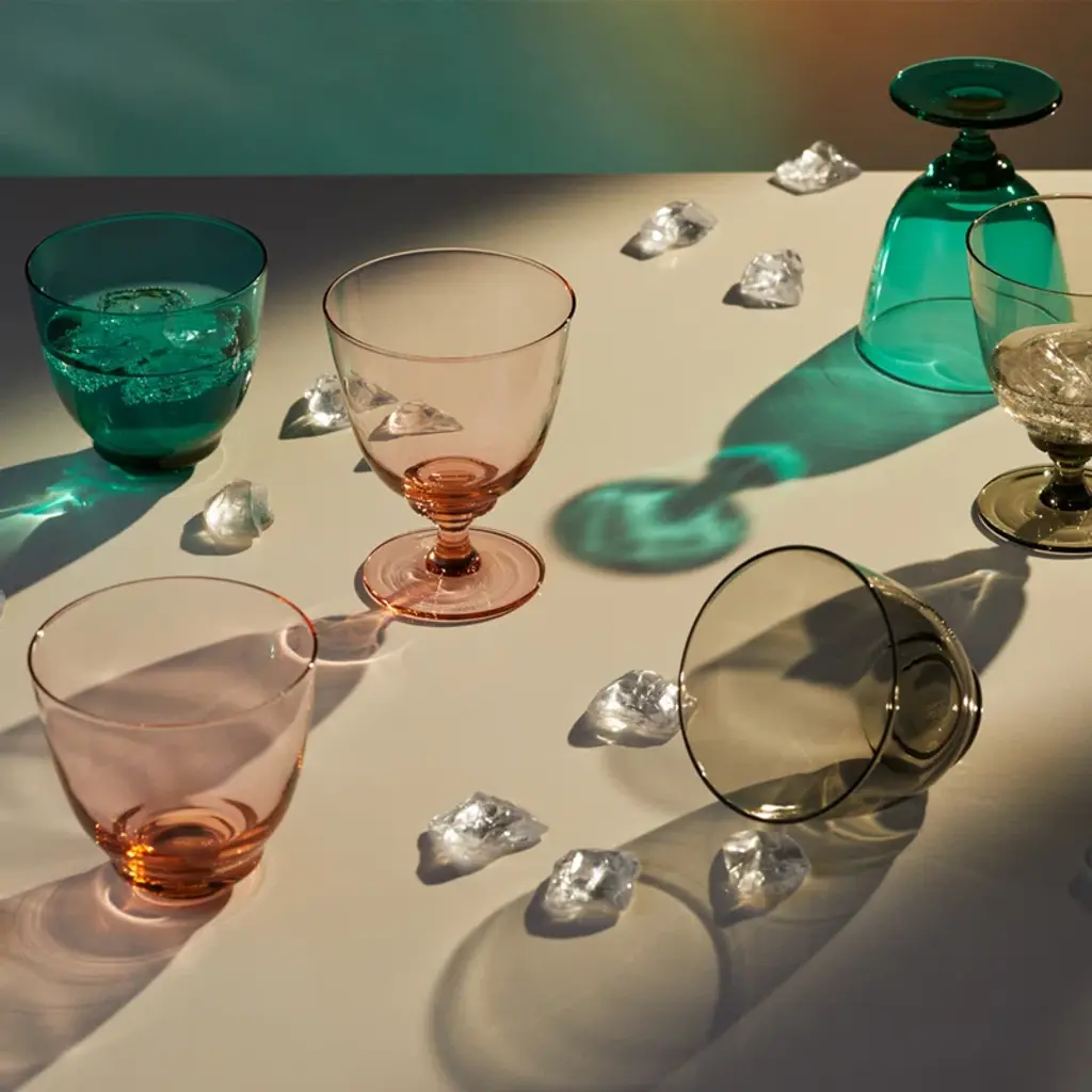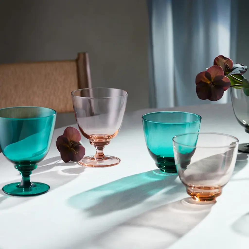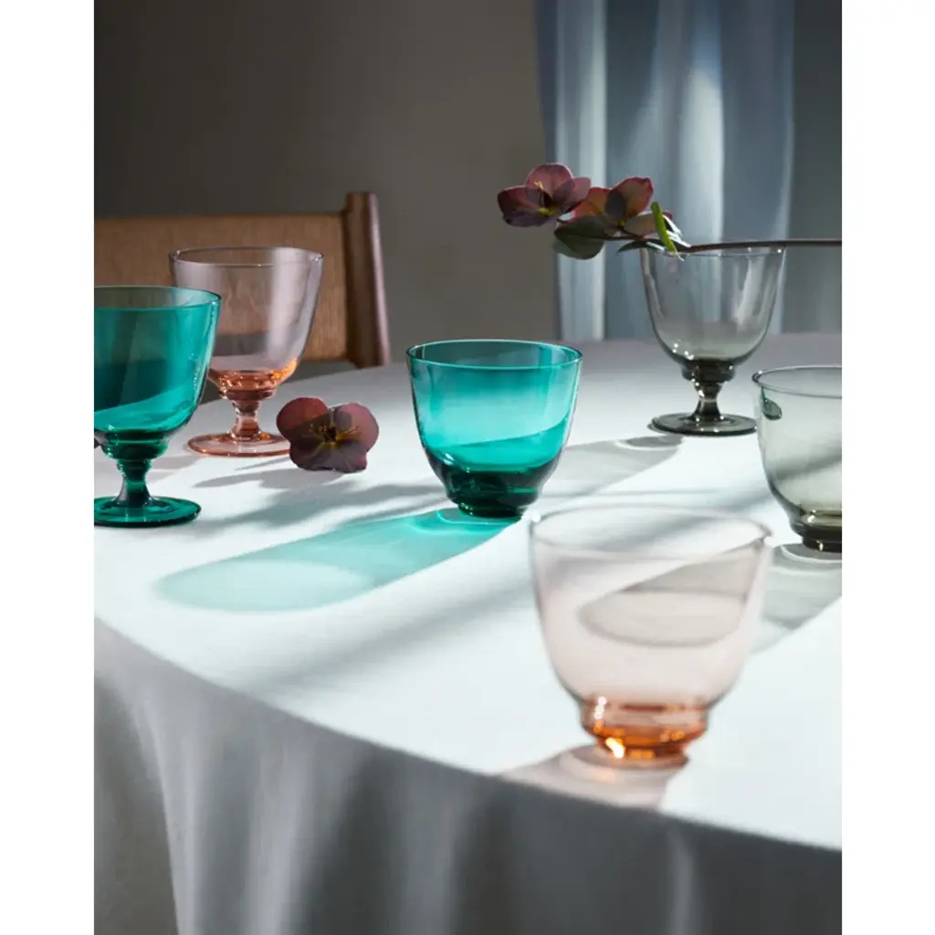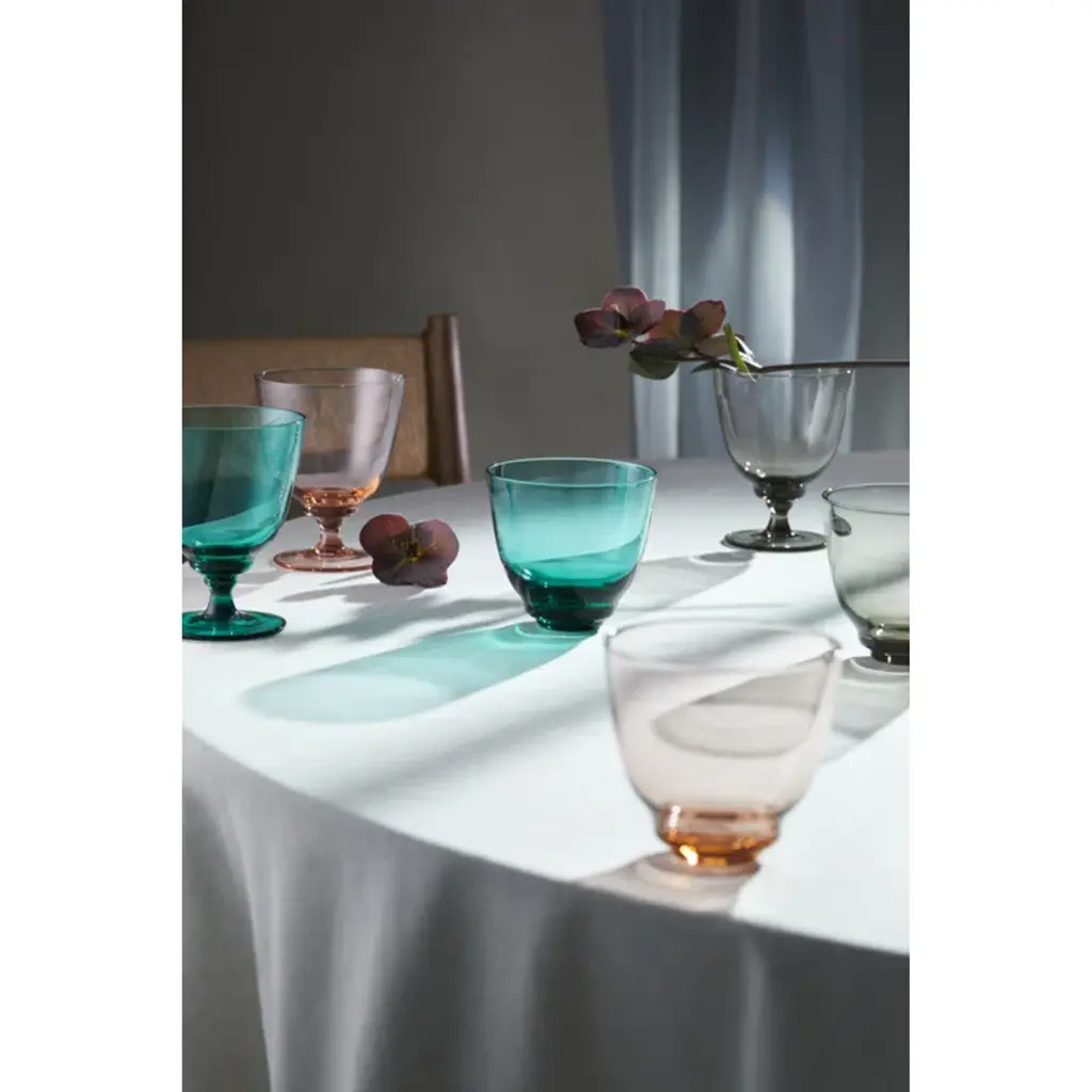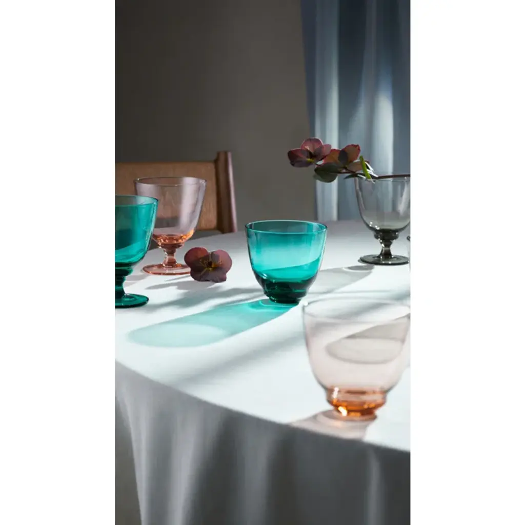 Brighten up your day with a world of glass in beautiful colors. The beautiful colors of the Flow Holmegaard series instantly livens up the table setting and reinvigorates the senses. The glasses have a classic shape and are designed with a discreet wave pattern on the bottom, inspired by water ripples. The 35-cl flow tumbler in emerald green has a nice weight at the bottom and fits well in your hand. The flame-polished rim makes the glass sturdy and comfortable to drink from, and the mouth-blown tumbler is stackable. This makes the glass both classic and practical. All the glasses in the Flow series are mouth-blown, so that each one is completely unique. The tumbler is mouth-blown in a flamboyant green color, sparking hope and joy on both a dark winter day and a sunny midsummer day, and contrasts beautifully with the champagne color. Dishwasher-safe at max. 55 degrees.