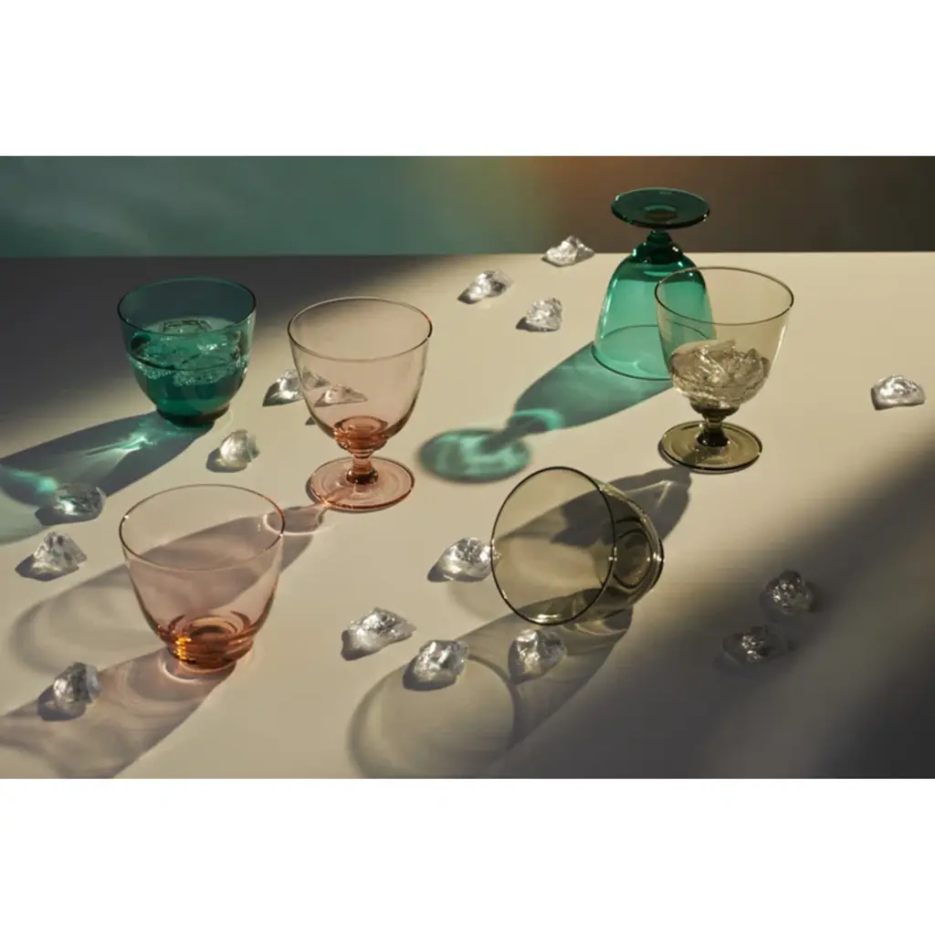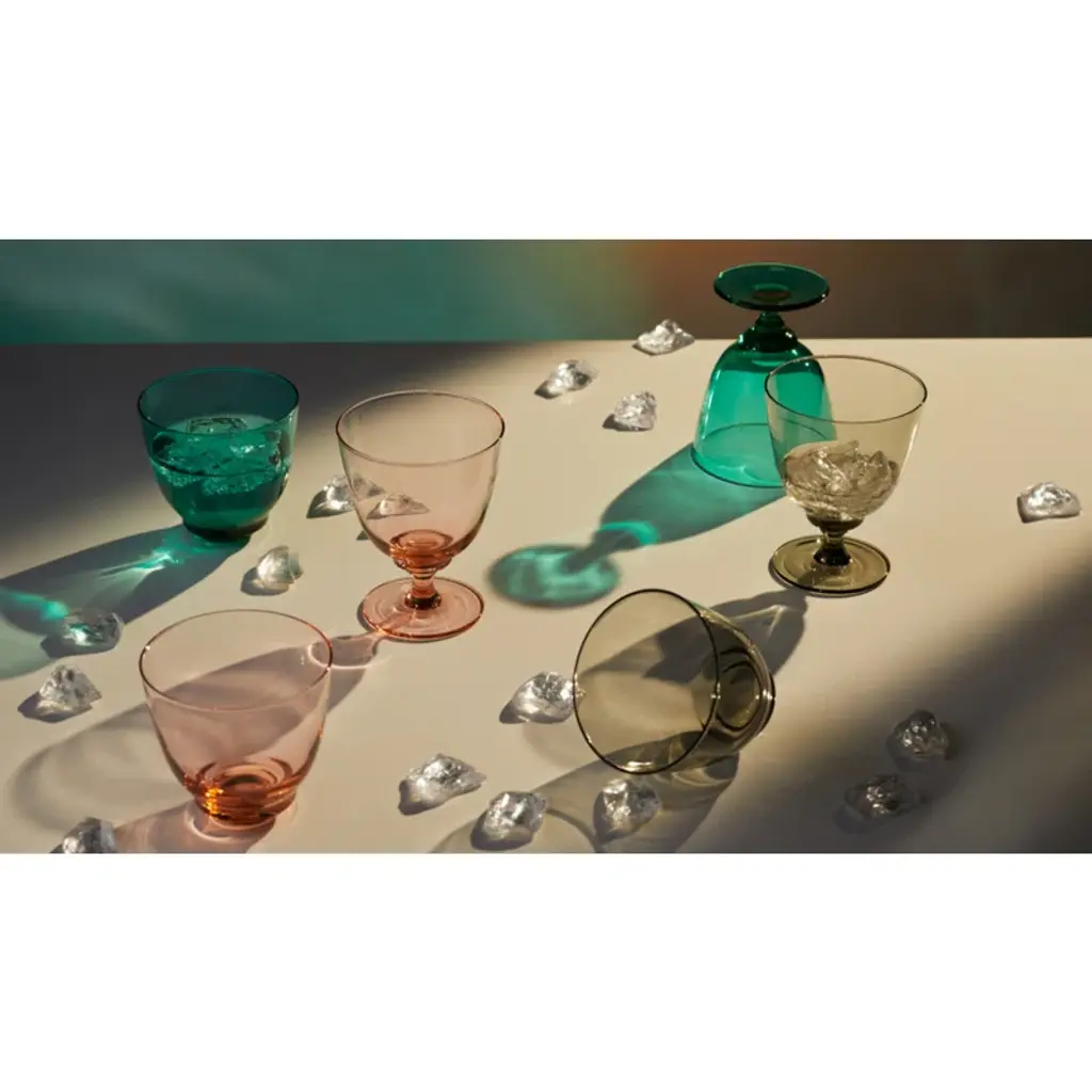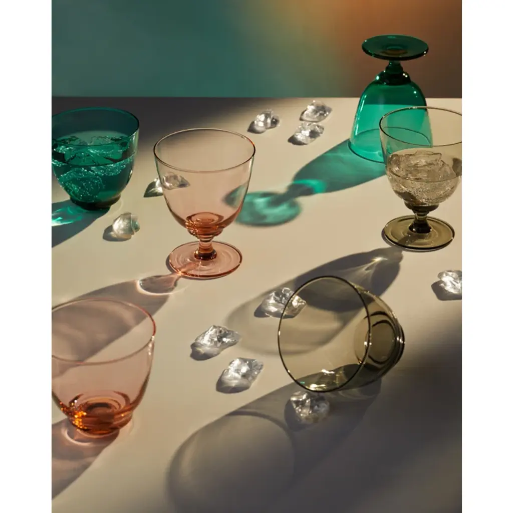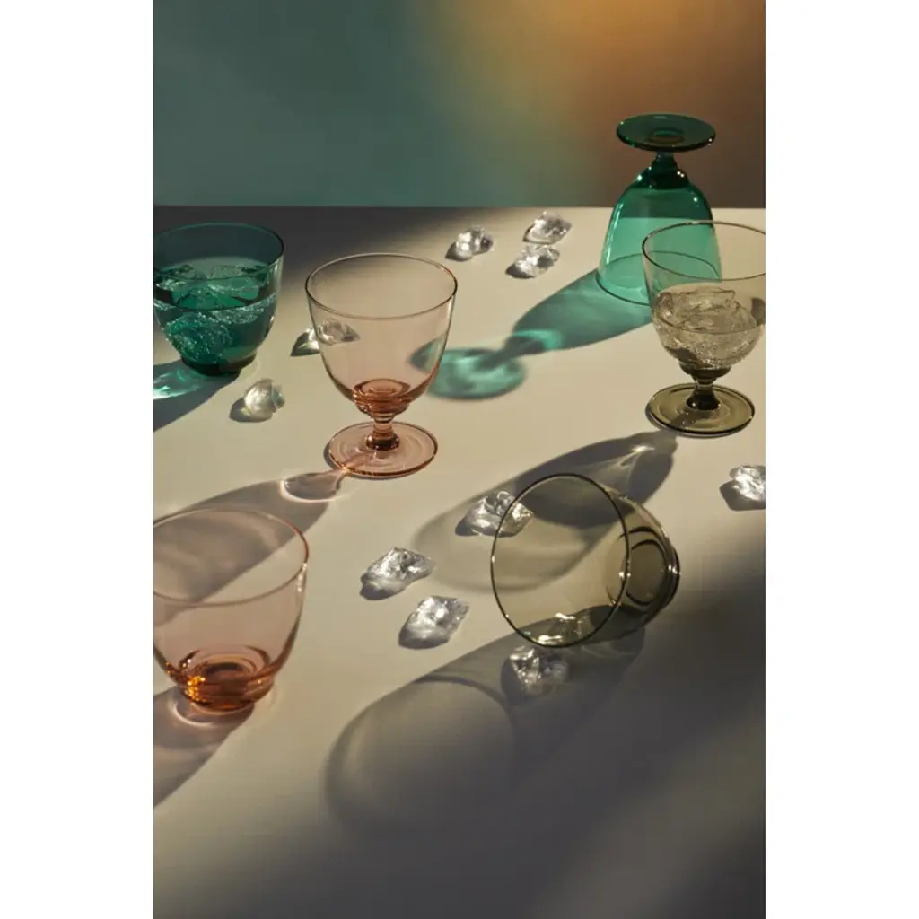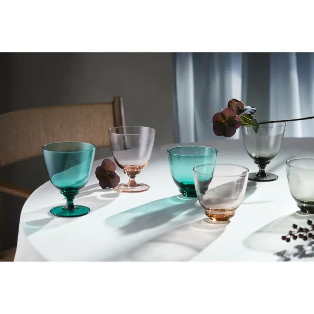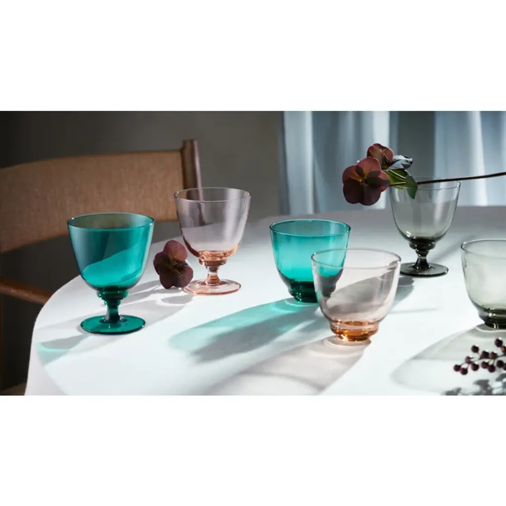 Brighten up your day with a world of glass in beautiful colors. The beautiful colors of the Flow Holmegaard series instantly livens up the table setting and reinvigorates the senses. The glasses have a classic shape and are designed with a discreet wave pattern on the bottom, inspired by water ripples. The 35-cl flow tumbler in emerald green has a nice weight at the bottom and fits well in your hand. The flame-polished rim makes the glass sturdy and comfortable to drink from, and the mouth-blown tumbler is stackable. This makes the glass both classic and practical. All the glasses in the Flow series are mouth-blown, so that each one is completely unique. The tumbler is mouth-blown in a flamboyant green color, sparking hope and joy on both a dark winter day and a sunny midsummer day, and contrasts beautifully with the champagne color. Dishwasher-safe at max. 55 degrees.