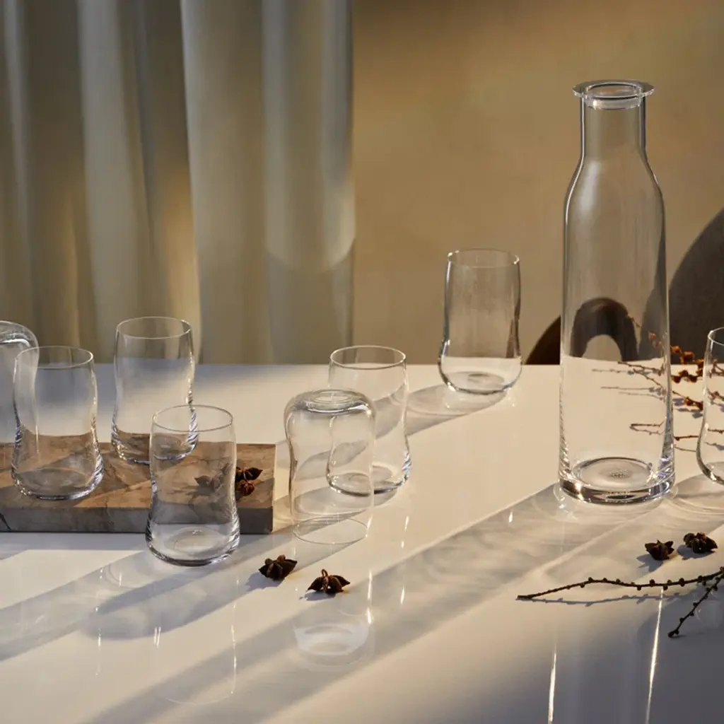 Give your table organic designer shapes The tumblers with a volume of 25 cl from Peter Svarrer's Future range are ideal for water, milk and juice. The design sits comfortably in your hand – and is ideal even for the youngest members of the family. The tumbler is alson a slightly larger version with a volume of 37 cl. The range also includes glasses for Burgundy, bordeaux, white wine, champagne and aquavit as well as a large carafe. The Future glasses are presented in a box of six and are an ideal gift – not least for yourself.