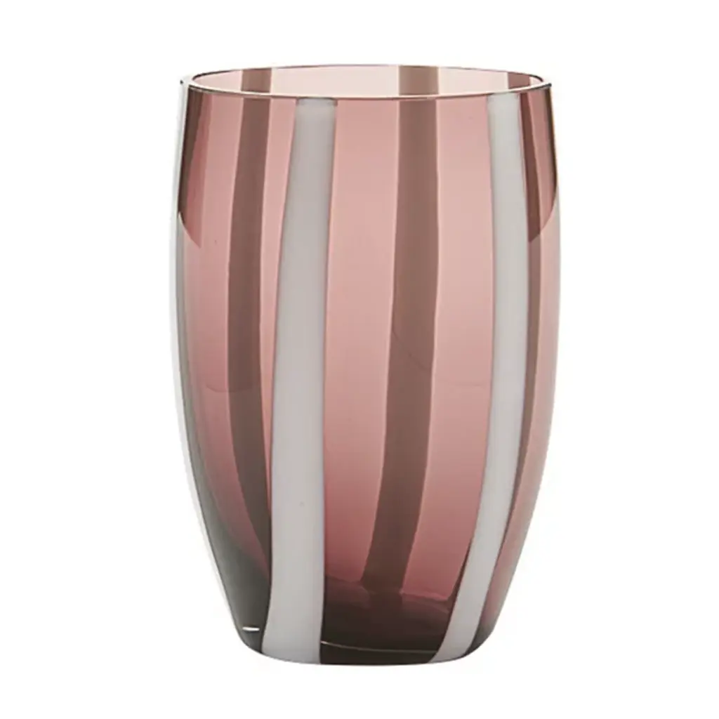 Bring beautifully banded color to your dining spaces with the Gessato Tumbler, Set of 2 from Zafferano America. A lasting Federico de Majo design. Each tumbler features vertical glass paste bands that add striking texture and vibrant contrast to each piece. The mass-colored glass and dishwasher-safe combine a simple design with artistic elegance, elevating any dining experience.