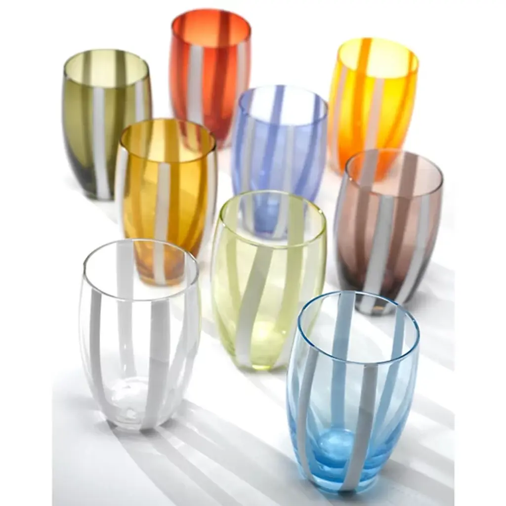 Bring beautifully banded color to your dining spaces with the Gessato Tumbler, Set of 2 from Zafferano America. A lasting Federico de Majo design. Each tumbler features vertical glass paste bands that add striking texture and vibrant contrast to each piece. The mass-colored glass and dishwasher-safe combine a simple design with artistic elegance, elevating any dining experience.