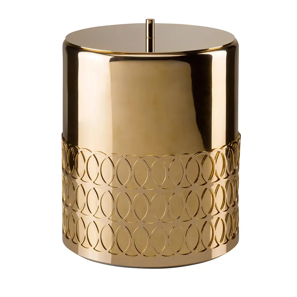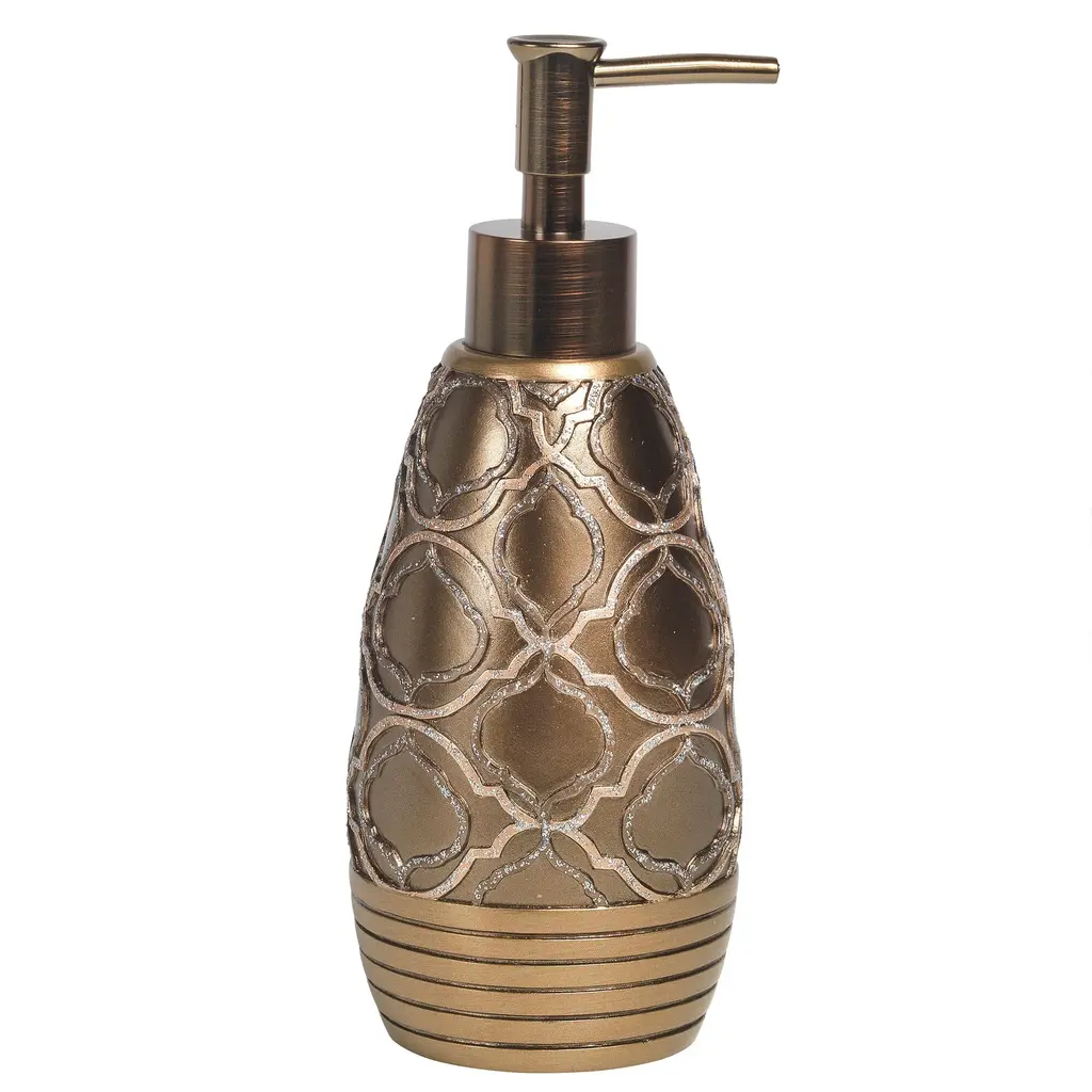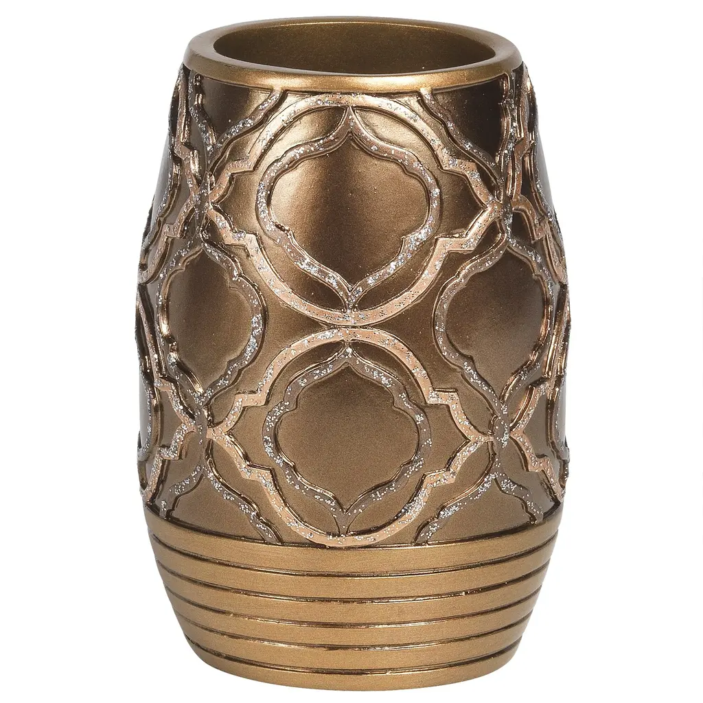 Elevate your bathroom decor with a touch of luxury using our Gold Medallion Bath Accessory Set or Separates. Each piece features a gold medallion pattern with a cracked finish for an elegant look. Made of high-quality resin, choose from a waste basket, tissue box, lotion pump, soap dish, tumbler, or toothbrush holder to suit your needs. Add a single piece for a subtle touch of sparkle, or go for the full set to create a cohesive and sophisticated look.Features: