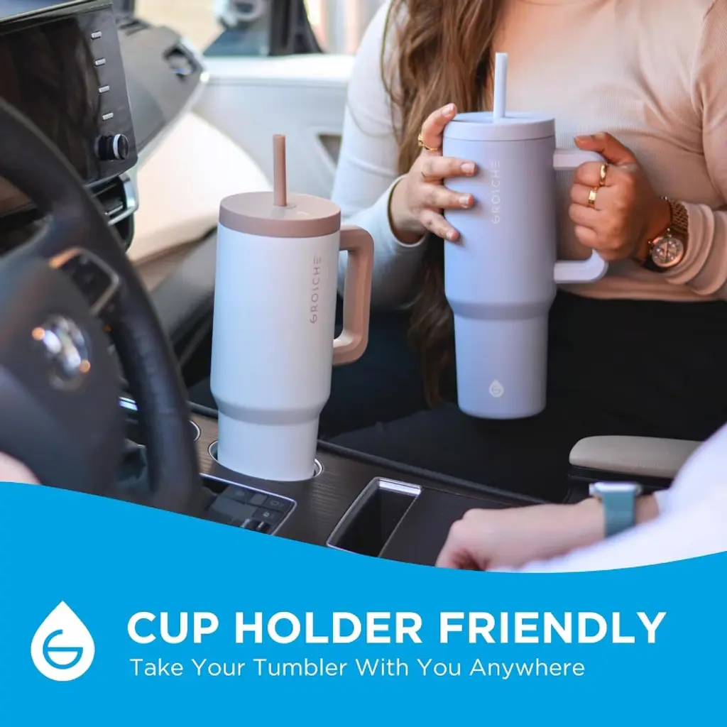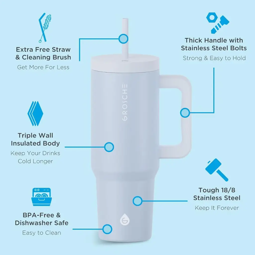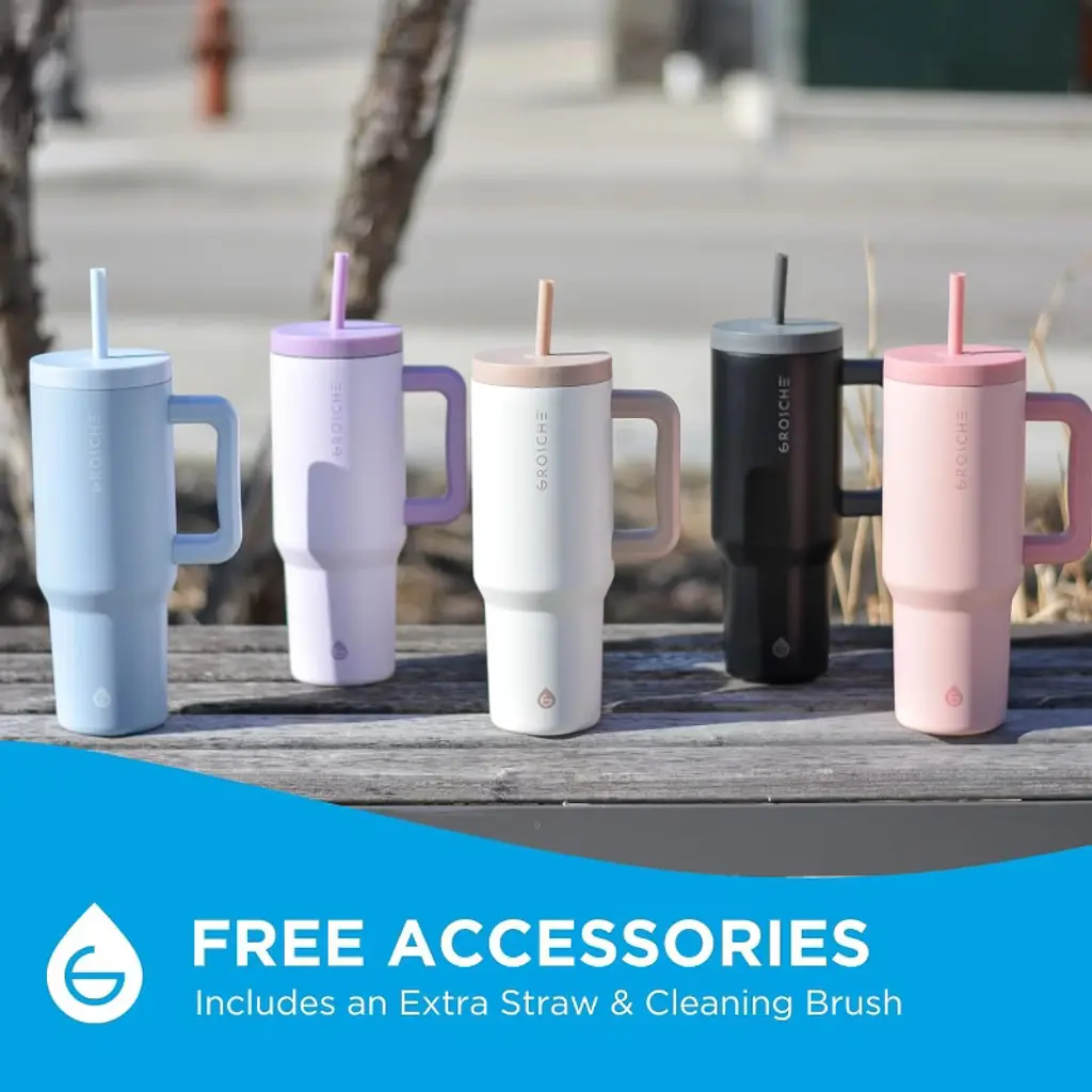 The ASPEN 40 oz Insulated Straw Tumbler is the perfect on-the-go hydration companion to take with you anywhere you go! This stylish and convenient 40oz Tumbler with straw was designed with triple wall insulation, meaning it can hold ice up to 48 hours and keep drinks icey cold all day long. The ASPEN Insulated Tumbler has all the features you need - It's built with thick 18/8 stainless steel, it's dishwasher safe, BPA and PFAS free, cupholder friendly, and includes a free extra straw and cleaning brush. Even better it's a purchase that gives back to someone in need. Every GROSCHE product you buy funds 50+ days of safe drinking water for someone in need through the GROSCHE Safe Water Project. Together, we're making a difference.
