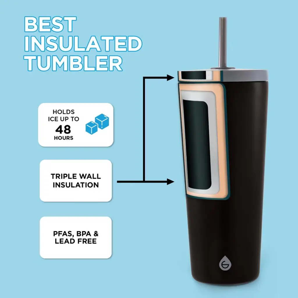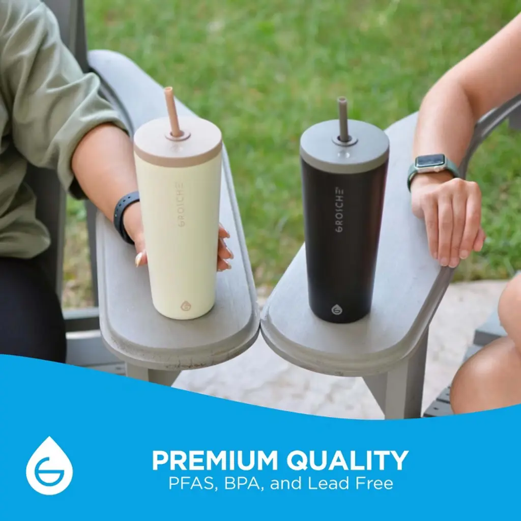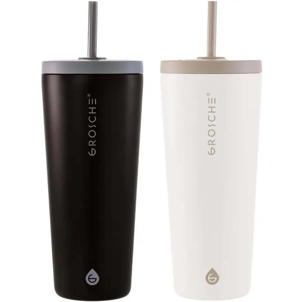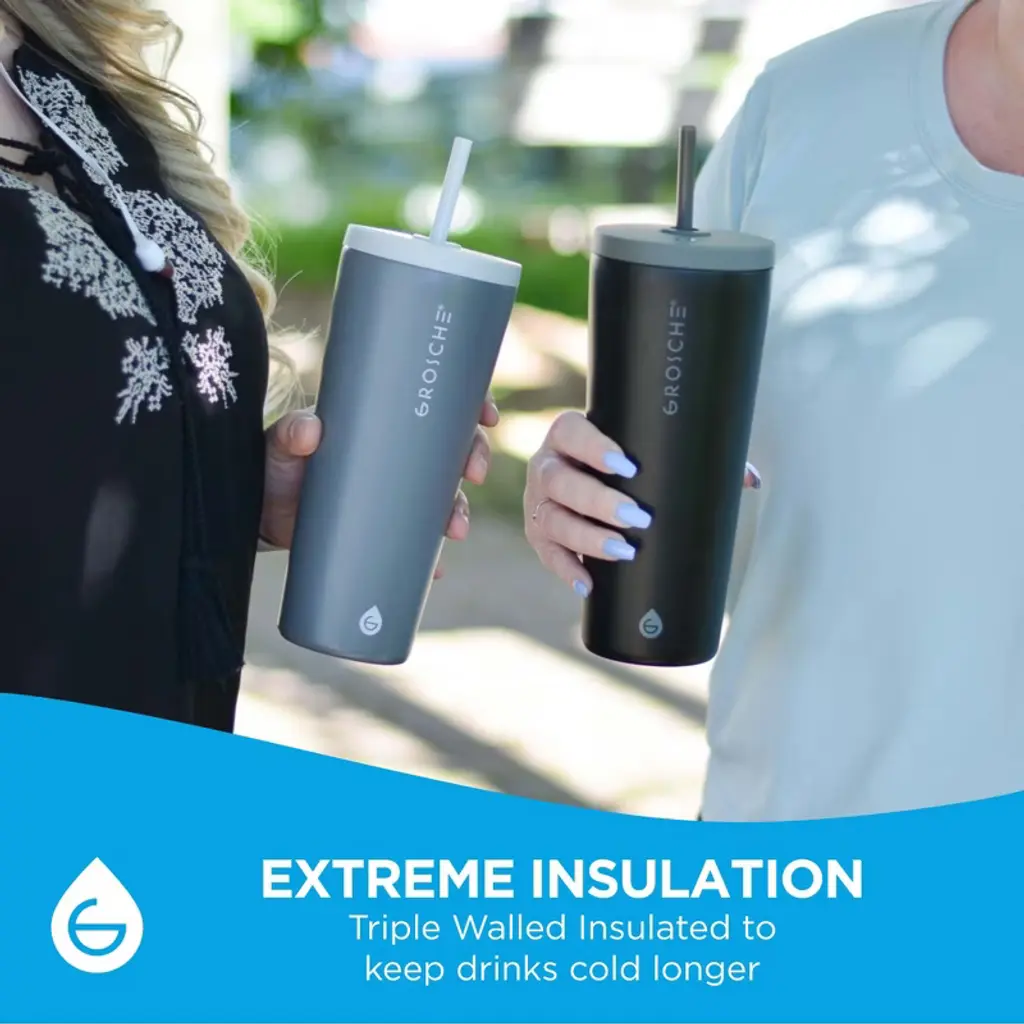 Grosche Jasper Insulated Tumbler With Straw - 23oz, Straw Tumbler, Graphite Black