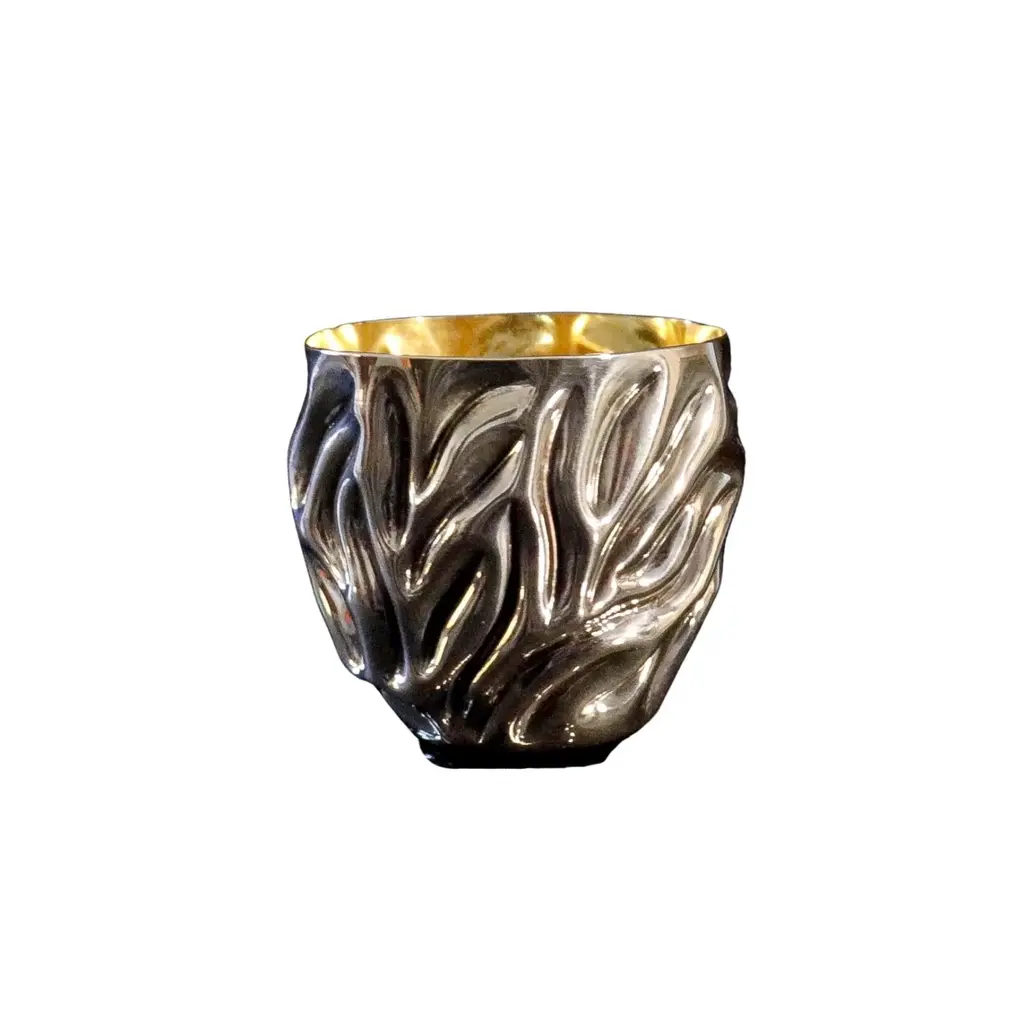 Discover the exquisite blend of beauty and functionality Copper Tumbler from unique collection "One of A Kind", showcasing a mastery of copper works. Each tumbler is meticulously crafted by artisans, ensuring a unique piece that stands out in any collection. Designed by Mert OnurChased & Engraved by Ertuğrul DurmazMetal Spinning by İbrahim AydınPolished by Yücel GürSilver Coated by Doğan Kalemköy / Balık CoatingLogo Stamping by MODeditions TeamBox Production by Wooden IstanbulSerigraphy by Hasan ÖzkanSuitable for both hot and cold beverages, this copper glass elevates your drinking experience while offering the health benefits associated with copper and silver. Celebrate special moments with this ideal copper anniversary gift, reflecting thoughtfulness and luxury.