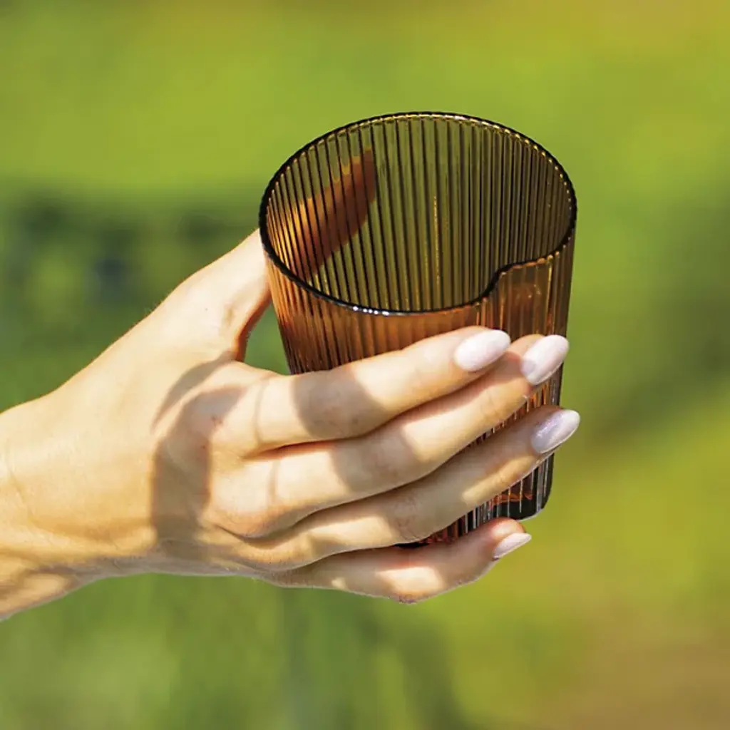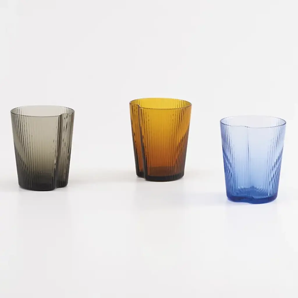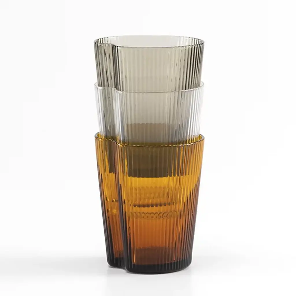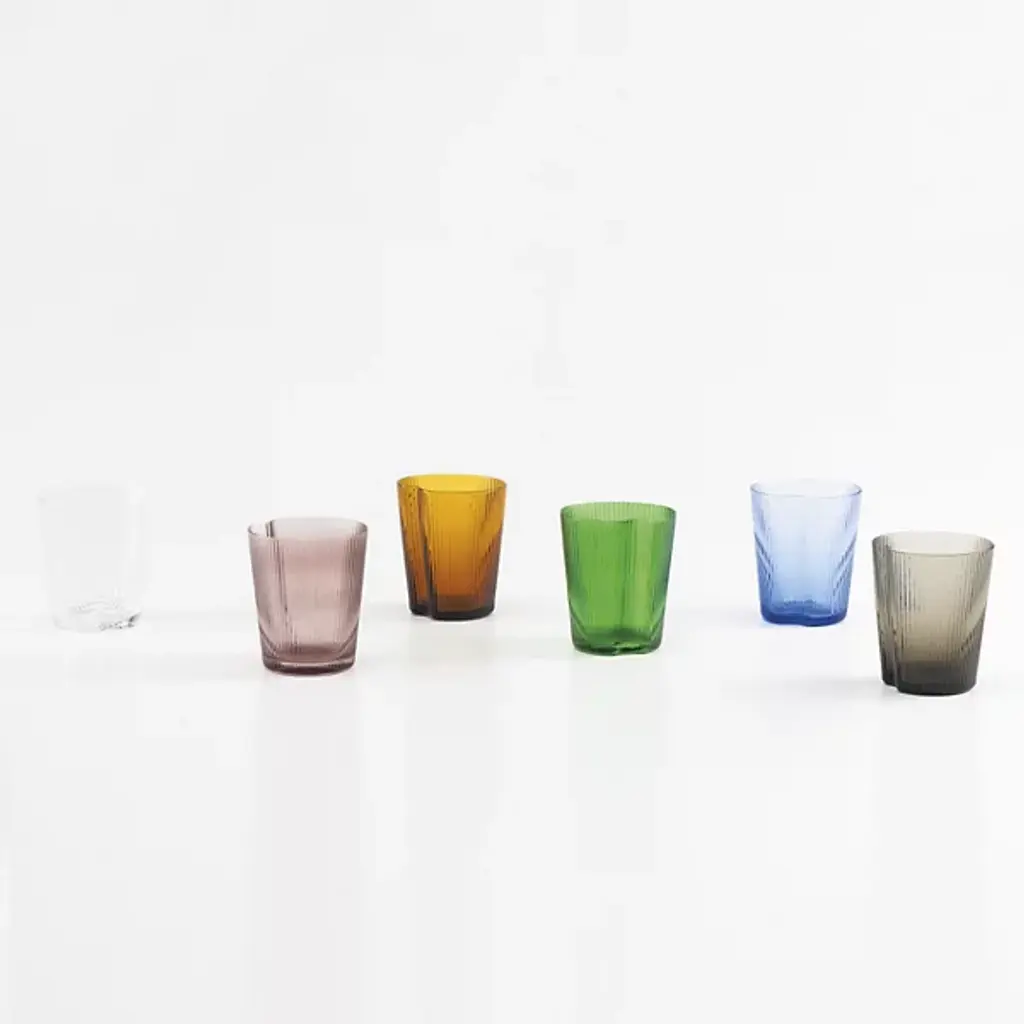 The Handy Tumbler, Set of 6 from Zafferano America unites an open, ergonomic shape with practical applications. Designed by Federico De Majo, each tumbler is mouth-blown from soda-lime glass and features slender vertical striations, combined with a crimped-in side that offers easy gripping. The flaring shape and side seam provide positive retention, while also complementing the rest of the tumblers in the set and maximizing storage space.