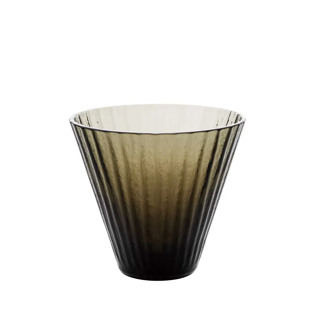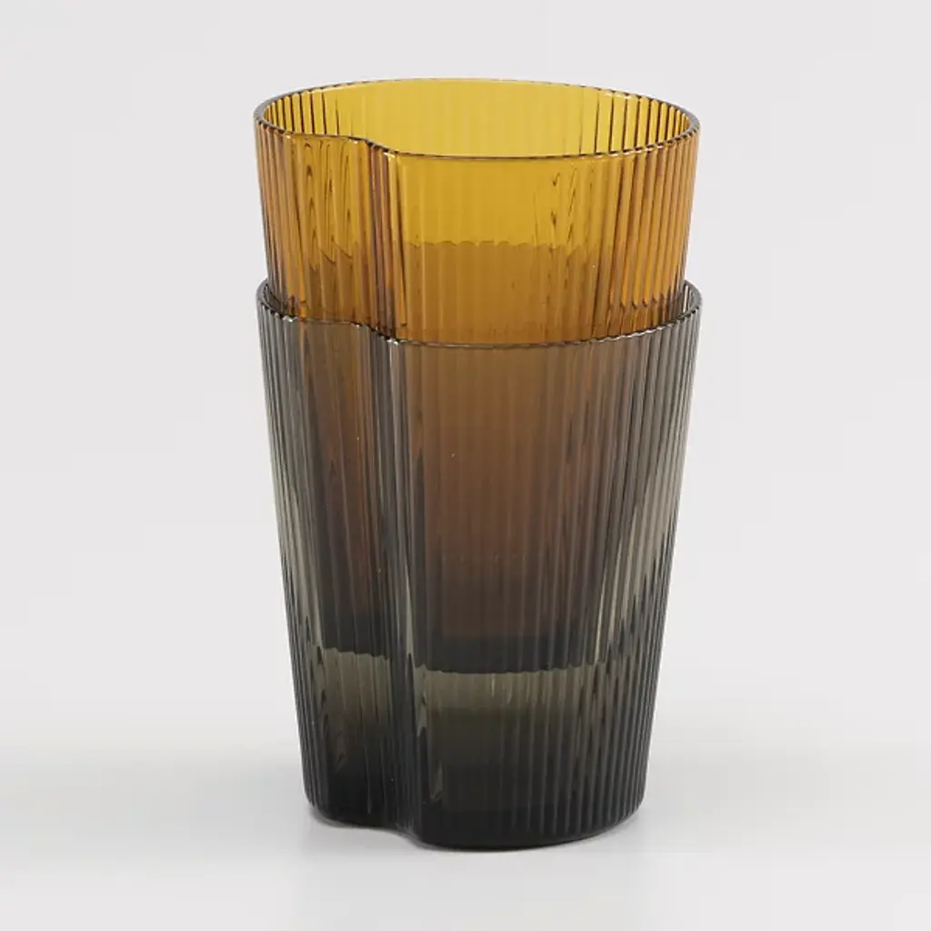 The Handy Tumbler, Set of 6 from Zafferano America unites an open, ergonomic shape with practical applications. Designed by Federico De Majo, each tumbler is mouth-blown from soda-lime glass and features slender vertical striations, combined with a crimped-in side that offers easy gripping. The flaring shape and side seam provide positive retention, while also complementing the rest of the tumblers in the set and maximizing storage space.