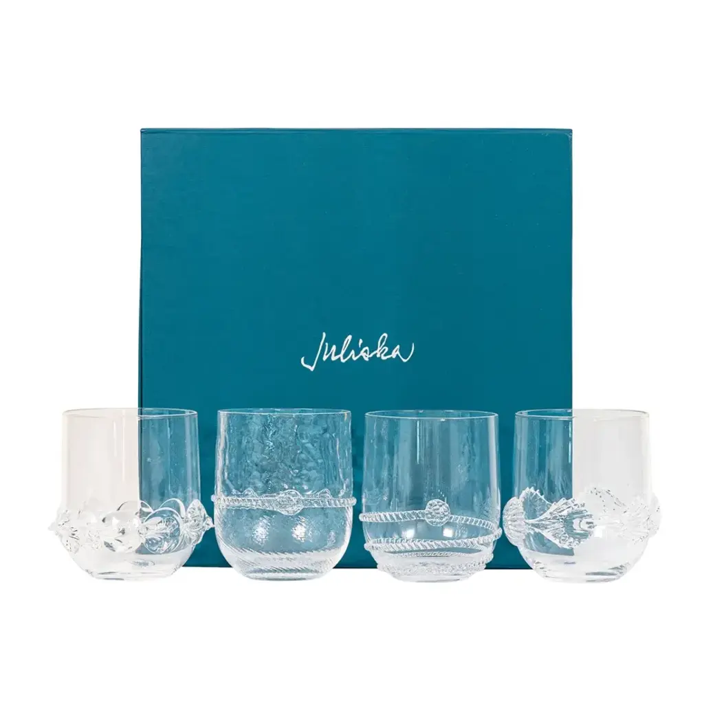 This exquisitely gift boxed set features four of our iconic Bohemian glass motifs: Amalia, Graham, Ophelia, and Ines. Gift boxed. Based in Connecticut, Juliska is committed to bringing elegant European design into our modern homes. Since its founding in 2001, when David and Capucine Gooding began by working with artisans outside of Prague to reproduce antique Bohemian glass pieces, every piece from Juliska has shared a rich heritage spanning six centuries of European design. Juliska's creations are timeless, romantic and effortlessly chic.