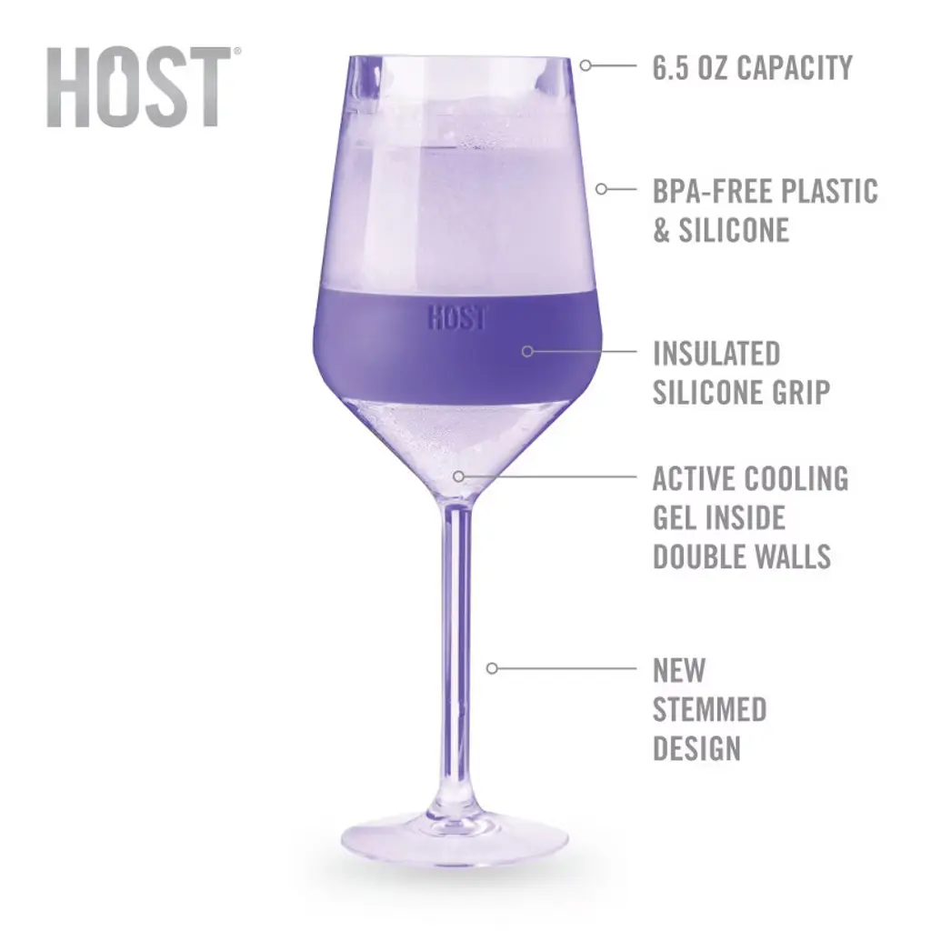 INSULATED WITH ACTIVE COOLING GEL Keep your wine chilled longer Ooh la la! The Wine FREEZE just got elevated. Complete with an elegant stem, the Stemmed Wine FREEZE is perfect for swirling Riesling like one of those fancy schmancy wine people and keeps your favorite vintage chilled for over an hour. Can crystal do that? Quantity: 2 cups Capacity: 6.5 oz. Materials: BPA-free plastic with silicone grip Design: Insulated walls with active cooling gel Care: Hand wash Directions: Stash your Stemmed Wine FREEZE upside down in the freezer for white wine or rosé, or keep it in the fridge for the ideal red wine temp. For best results, chill for 2+ hours before using. Warning: The Stemmed Wine FREEZE may give you illusions of grandeur. Team up with an accountability buddy to keep you grounded.