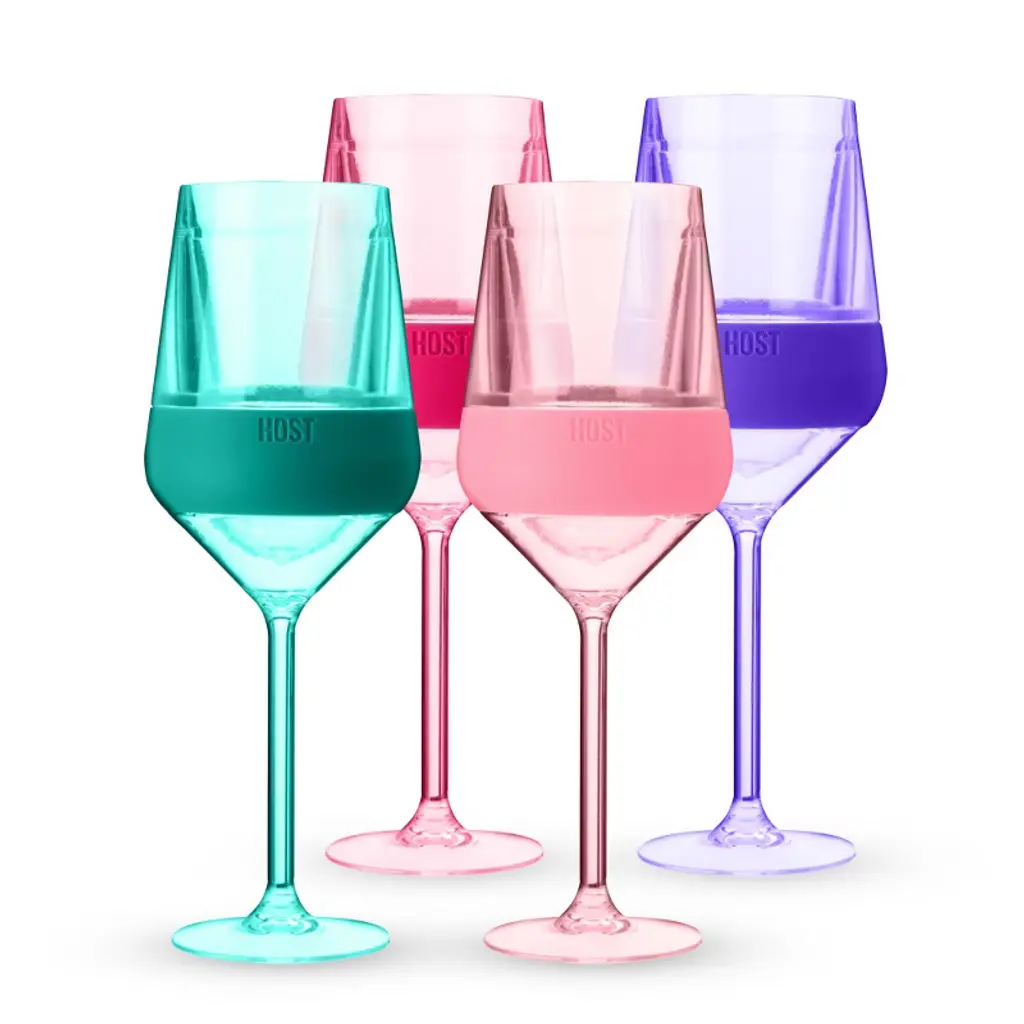 Host Wine Freeze Double-walled Stemmed Wine Glasses Freezer Cooling Cups With Active Cooling Gel, 6.5oz Plastic Tumblers, Tinted, Set Of 4, Multicolor