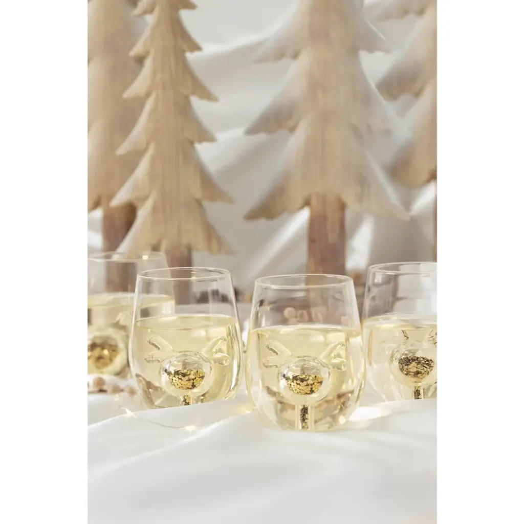 Jeanne Fitz Glitter Icon Stemless Glass Set Of 4 Tumblers Reindeer