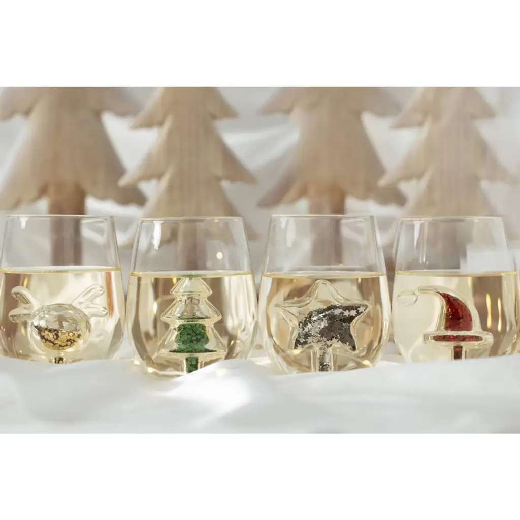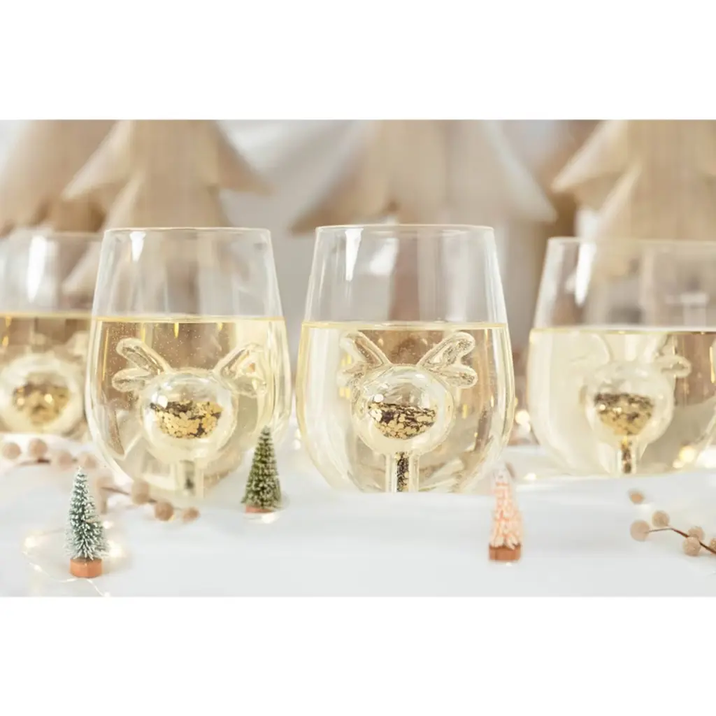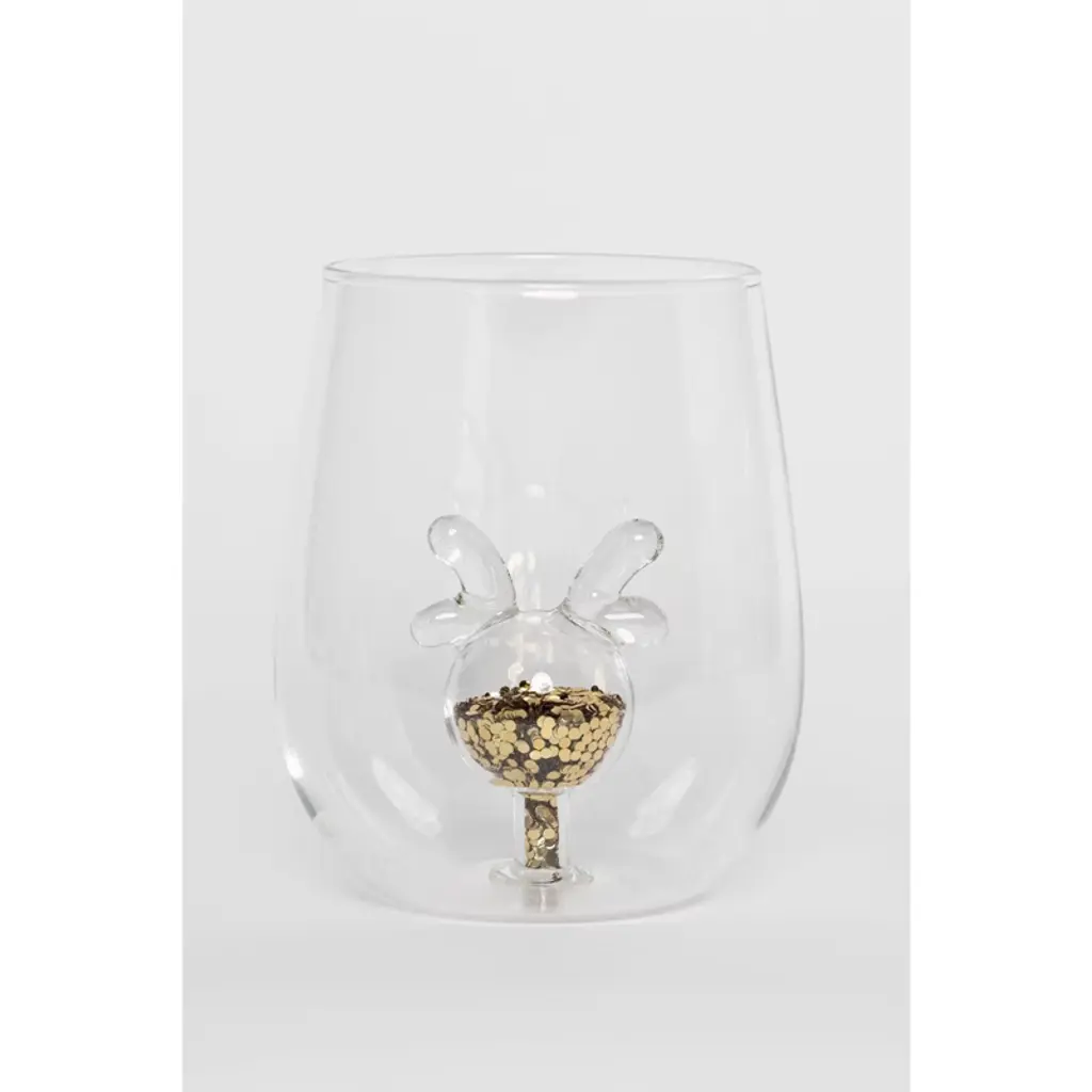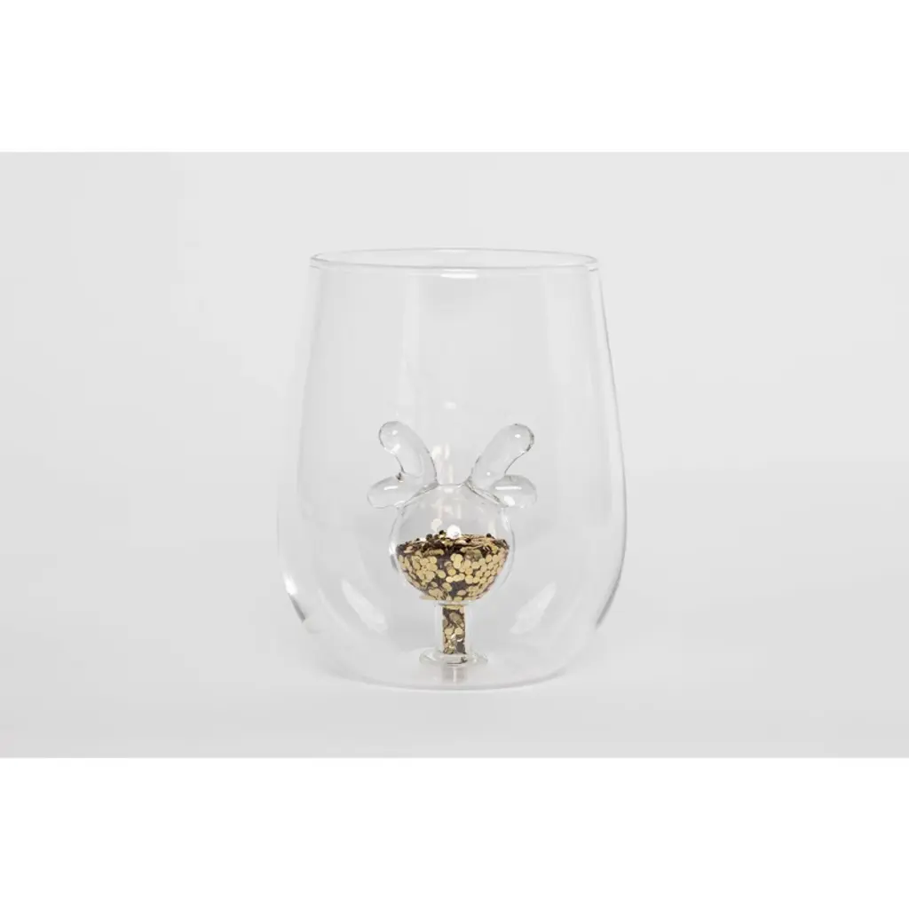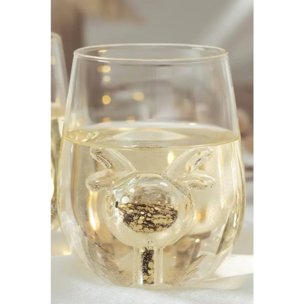 Celebrate the season with sparkle! The Jeanne Fitz Glitter Reindeer Stemless Wine Glasses are the perfect blend of festive charm and elegant design. Each borosilicate glass features a hollow reindeer icon at the center, filled with shimmering gold glitter that catches the light with every sip. Designed as keepsakes, not just drinkware, these glasses are ideal for holiday gatherings, thoughtful gifts, or adding a magical touch to your winter decor. Wrapped in tradition, made for memory-making—this is Christmas, Jeanne Fitz style. 14.5 oz.
