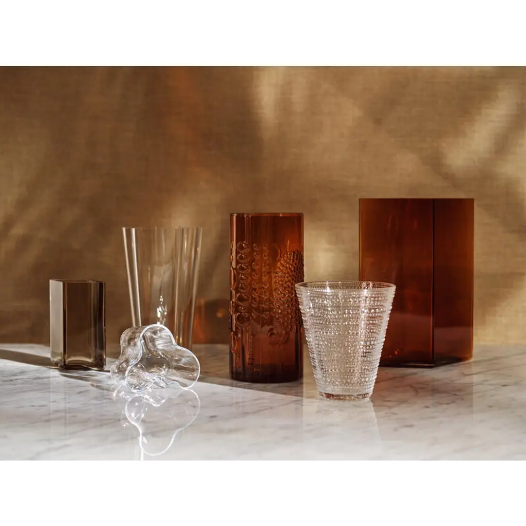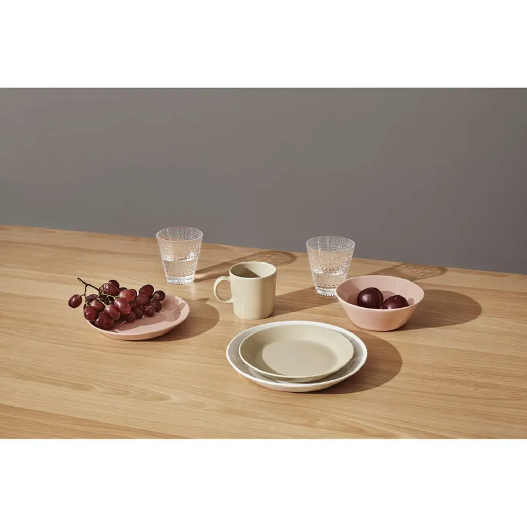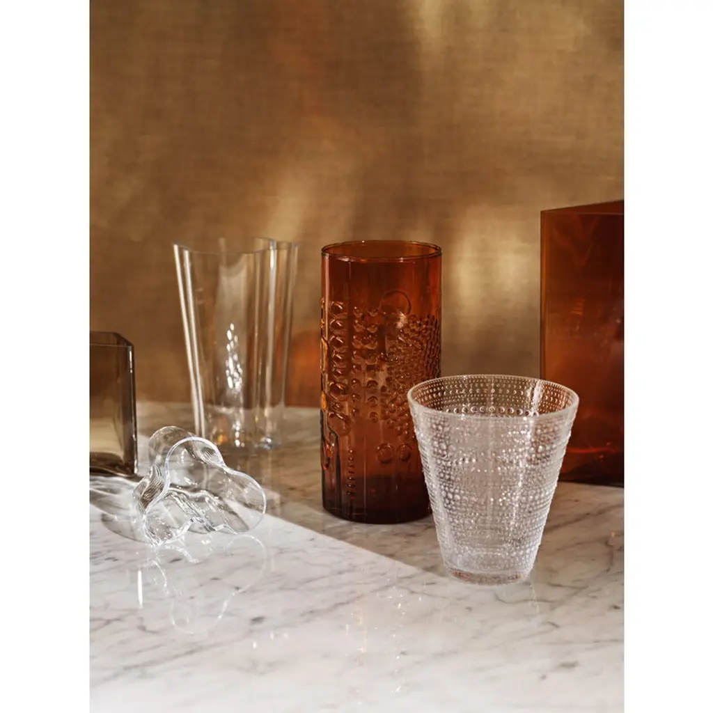 Iittala's Kastehelmi tumblers are part of the popular glass collection designed by Oiva Toikka. The 10.14 fl oz (3 dl) tumblers come in a set of four. In the 1960s, designer and artist Oiva Toikka set out to create a surface pattern that would conceal the joint marks in pressed glass. The result was Kastehelmi, Finnish for dewdrop, designed in 1964. Featuring delicate glass droplets arranged in a series of rings, Kastehelmi plays with light in the most beautiful way. Its playful elegance suits any table setting, from morning to night and from casual to formal.