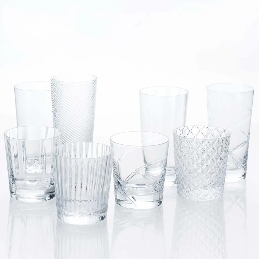 Our Kirameki glasses have been very popular since we launched the collection in eight different designs and in two different shapes.Kirameki glass evokes all five senses: by seeing the light going through the glass, by hearing the sound of ices clinking the glass, by feeling the weight and touching the pattern, and of course, by smelling and tasting the beverage in it.