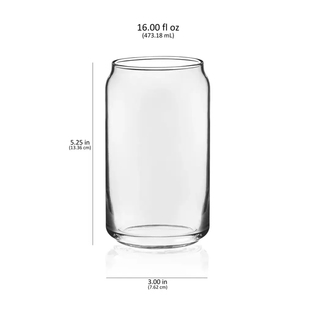 Libbey Soda Tumblers Set: Celebrate every moment, big or small, with our timeless clear soda can set designed to add a touch of sophistication to any occasion. Crafted from premium quality glass, these 16-ounce can shaped glass cups boast the iconic lip-hugging can shape, designed to capture the rich foam of sodas and beers with an easy hand-holding design. With a 3-inch diameter and 5.25-inch height, this beer glass set of 4 glasses ensures durability through clinks, splashes, and spills, while being dishwasher-safe for easy maintenance. Say goodbye to cluttered cans and hello to nature-friendly cans by opting for these lasting can-shaped pint glasses set of 4. Their enduring tumbler cups glass design complements any setting, offering a sophisticated touch to casual gatherings and entertaining, impressing guests with their modern aesthetic. These beer glasses set of 4 are ideal for any occasion—Christmas, New Year, Mother's Day, anniversaries, weddings, birthdays—sure to delight friends and family with their elegant yet practical appeal. This versatile coffee tumbler glass set serves a multitude of purposes, doubling as cordial, iced tea, beer, whiskey, margarita, and cocktail glasses, the beer can tumbler set is perfect for iced coffee or any beverage of choice.