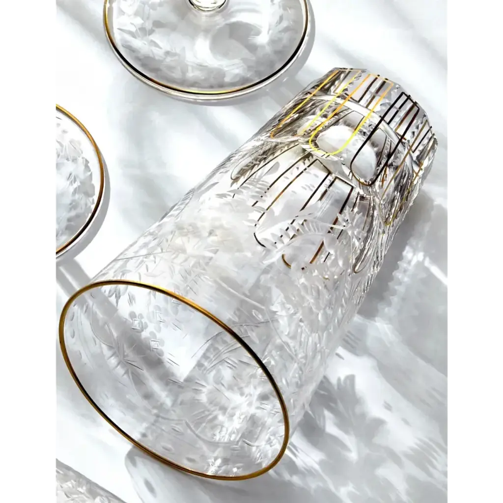 Maharani Clear Lead-Free Crystal, Cut, 24 Gold (Thin Line), Engraving Tumbler 240 Ml