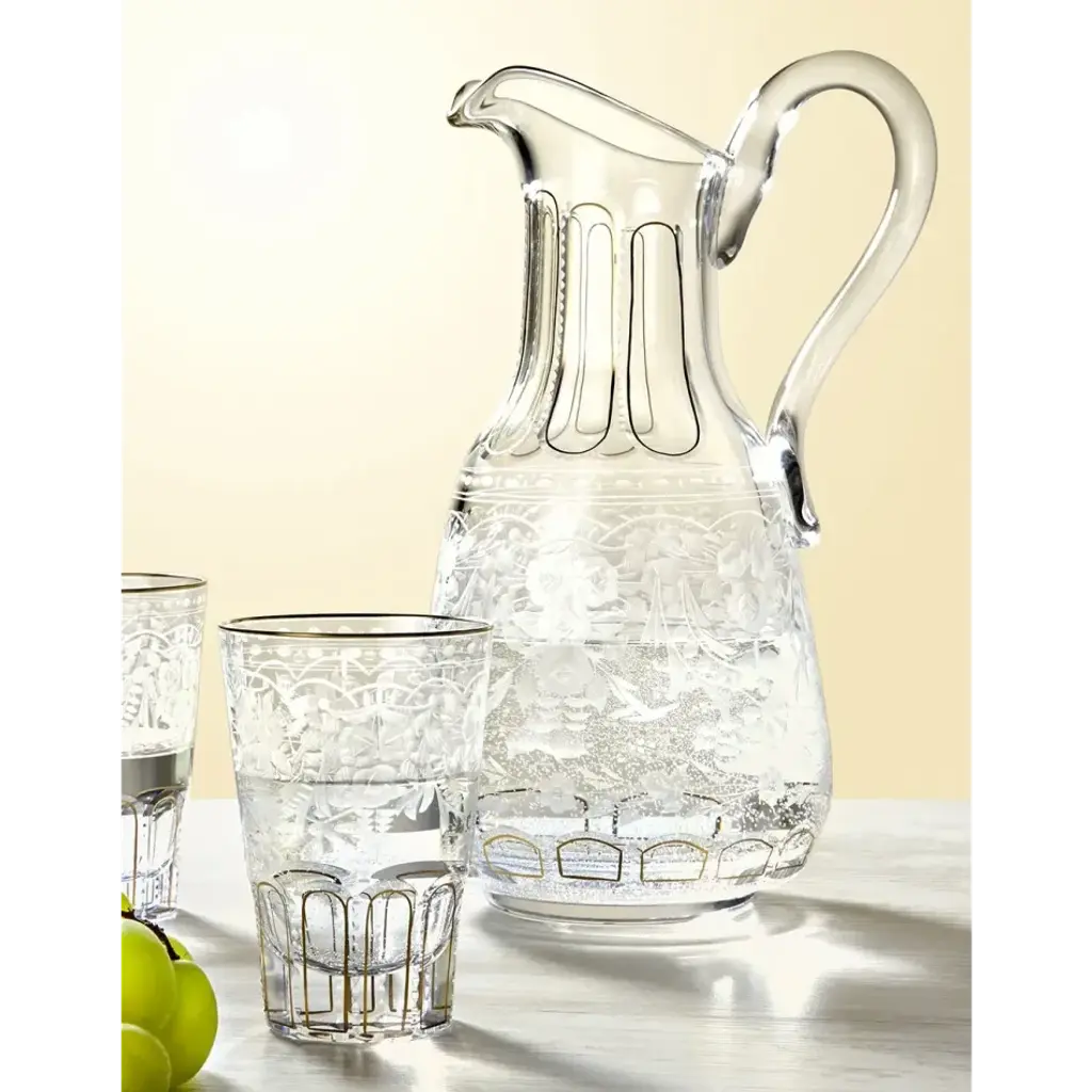 The 240 ml water glass is adorned with a floral motif and decorated with subtle lines of 24-carat gold plating. Clear crystal or one of the typical Moser colours will let the precise pearl cut stand out, a testament to the craftsmanship of the Moser glassmasters. Founded in 1857, Moser boasts a long tradition of superior artistic and technical standards in lead-free crystal. The quality of the crystal and perfection of Moser's hand cutting, engraving, gilding and brilliant colors are unsurpassed by any contemporary glass or crystal company in the world. Created by Ludwig Moser & Sons, the line originated as an engraving studio in the spa town of Karlsbad, located in Bohemia (now the Czech Republic), a region with deep roots in superior glass-making. During the late 19th and early 20th centuries, Moser developed its now famous technically perfect crystal production, employing a unique formula for producing a substance as hard as rock and as brilliant as lead crystal - but without using a trace of lead. This composition is very suitable for Moser's marvelous engravings, is ecologically sound and remains free of all concerns associated with lead. Moser's innovative techniques in cutting, engraving and coloring quickly won the line great acclaim at many prestigious international art exhibitions. Soon Moser became the proud possession of royalty, heads of state and well-known personalities throughout the world, an esteemed reputation that has held fast and continues to grow now in the 21st century. Today, Moser produces a wide range of stem and barware, holloware, accessories, giftware and art glass, all showcasing the superior quality, innovation and remarkable artistic expression for which the line has long been recognized.
