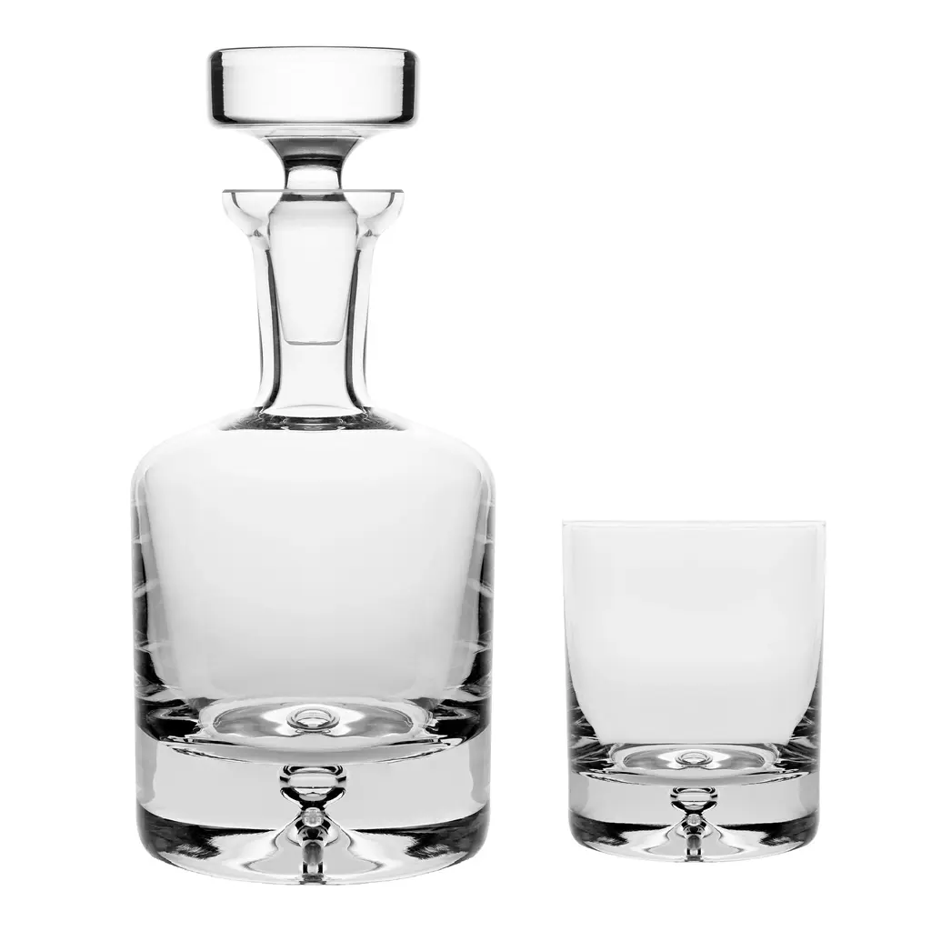 Majestic Gifts Inc. has been the leader in the crystal and glass industry for over two decades. Our sterling reputation of providing the consumer with the highest quality merchandise with the most cost effective pricing has been ongoing. This Whiskey Decanter & Tumbler Set are a part of the Majestic Gifts Inc. Barware Collection that has been an all time favorite. Artistically designed to coordinate beautifully with any tabletop decor. Rest assured these Tumblers will make a statement of elegance, thereby changing the ambiance from the simplest affair to an upscale event.Decanter 10.5" height & 4.5" diameter, dof tumblers 3.11" height & 3" diameter, Whiskey Decanter with stopper and bubble on base with set of 4 dof tumblers with bubble in base, Top Rack Dishwasher Safe.perfect gift for someone special or for personal use.