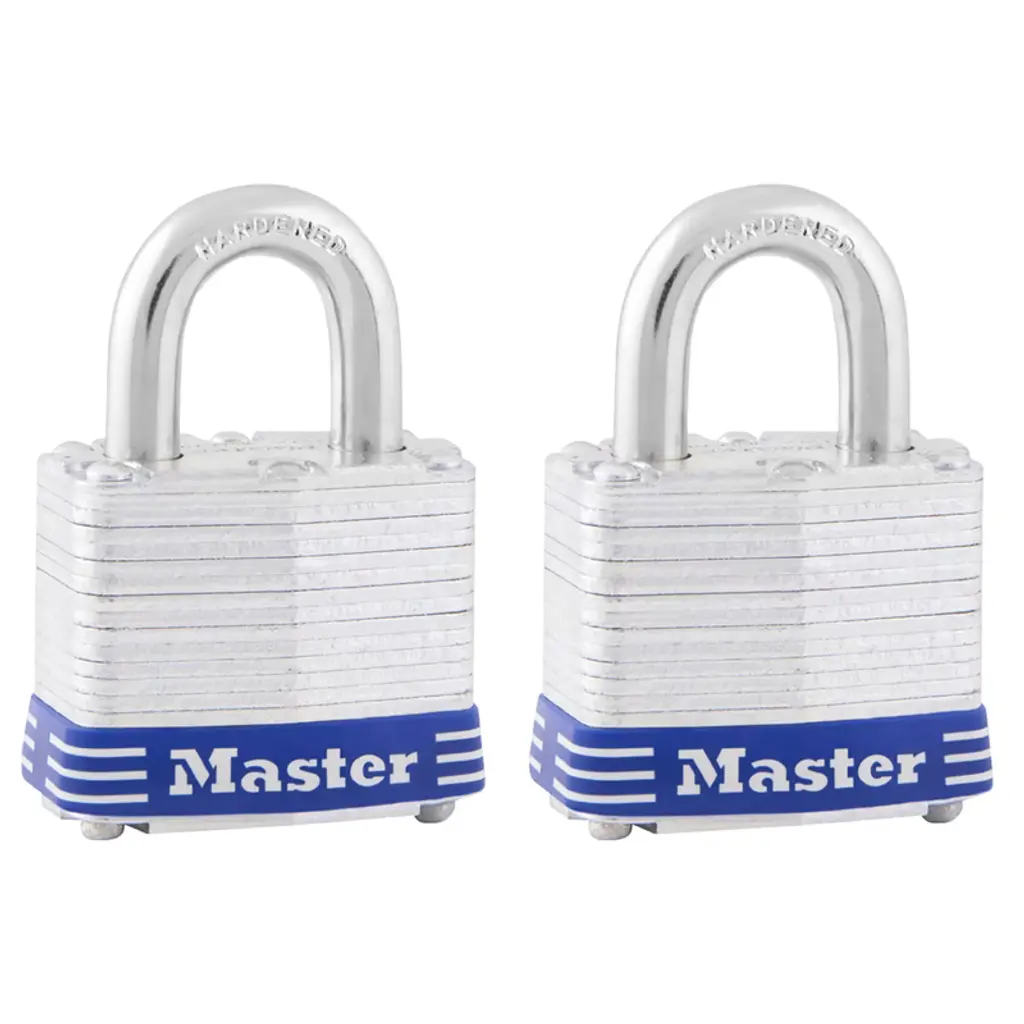 The Master Lock Laminated Padlocks feature a 1-9/16 in wide laminated steel body for maximum strength and reliability with shackle long and made of hardened steel offering extra resistance to cutting and sawing. The 4 pin cylinder prevents picking and the dual locking ball bearings provide resistance against prying and hammering.