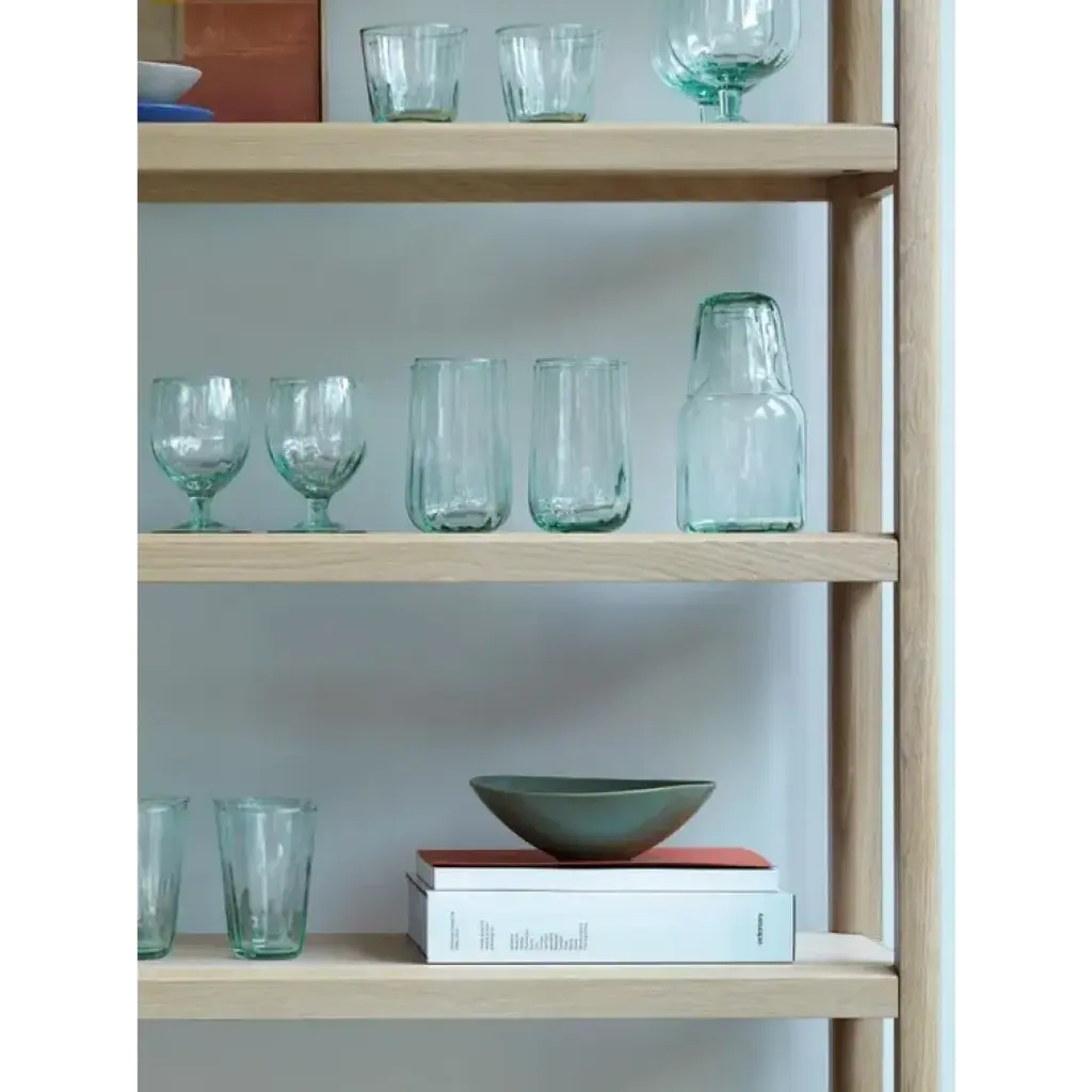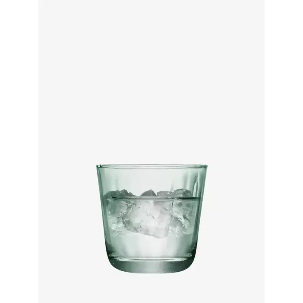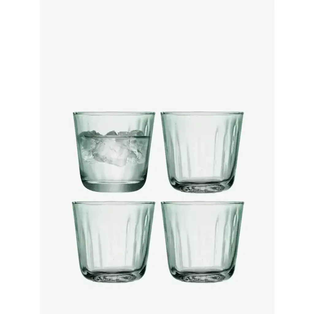 Set of four of stackable tumblers with a subtly fluted texture. Mouth blown from 100% recycled glass.