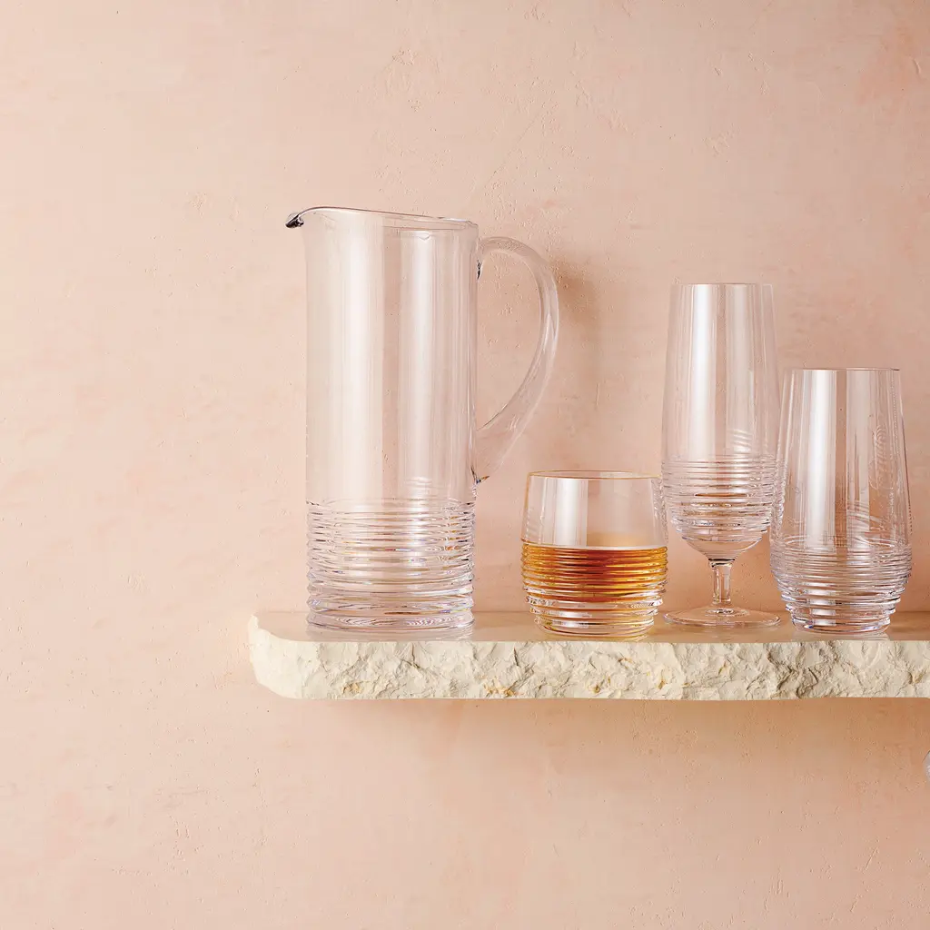 Waterford's Mixology Circon Barware features linear cuts that echo the bands around distilling barrels, in a contemporary crystal collection inspired by rum's authentic origins.