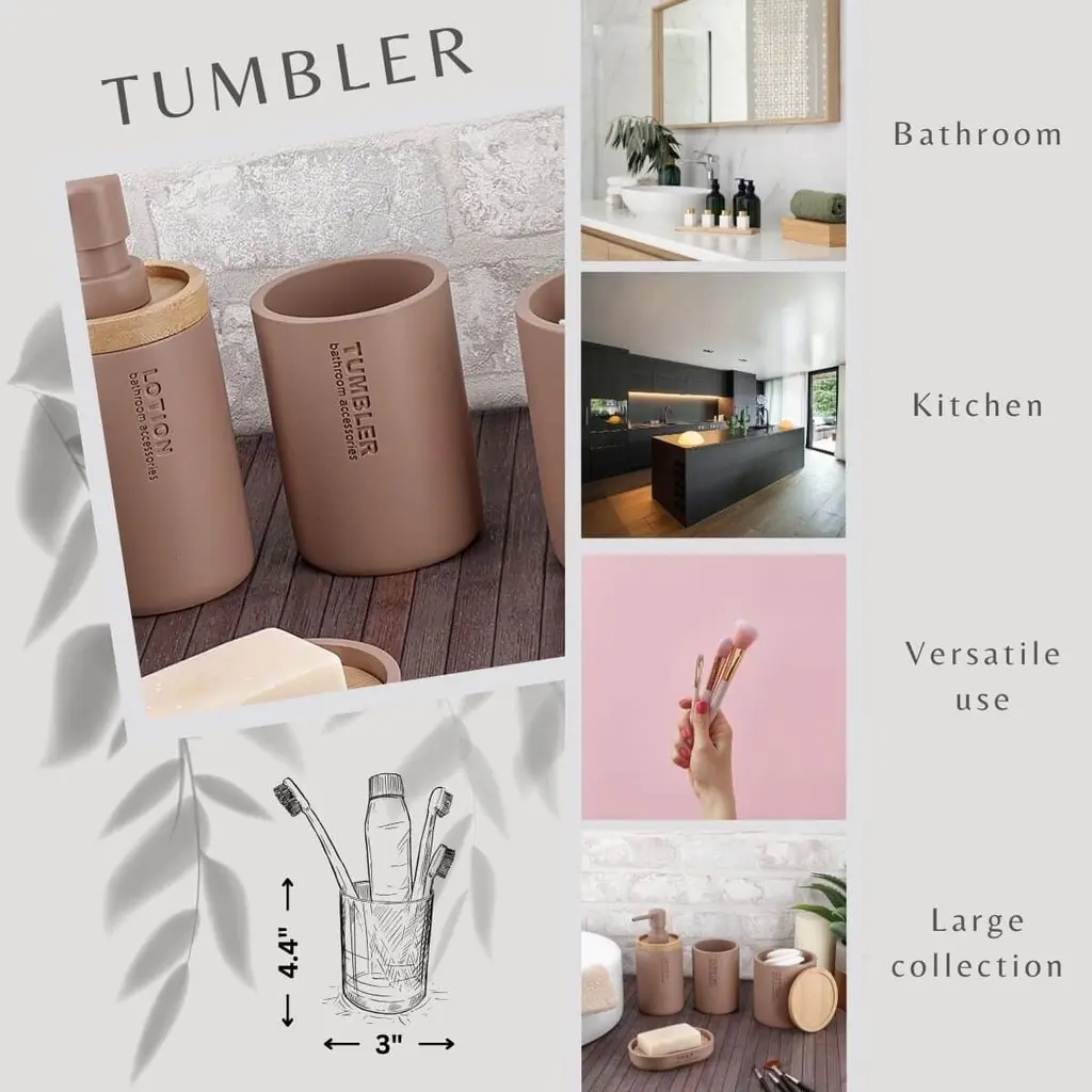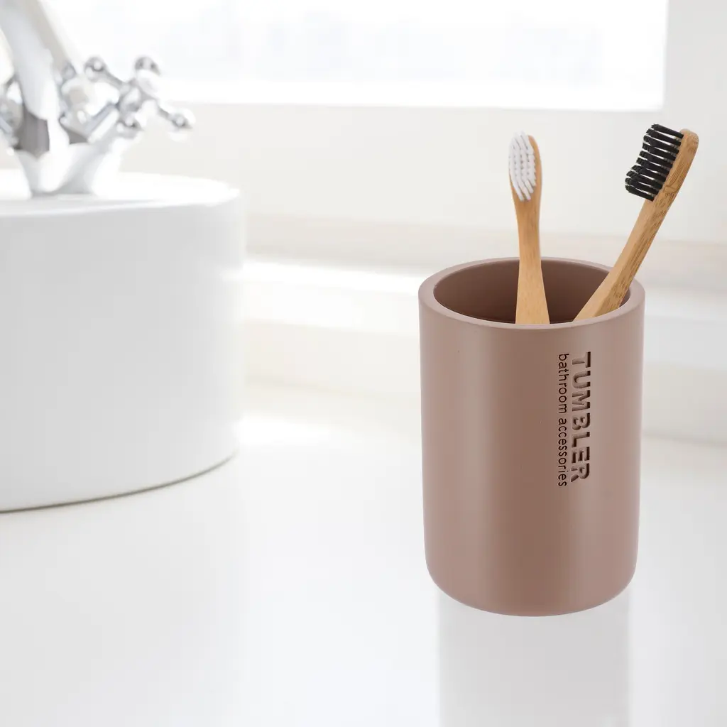 Modern Bathroom Tumbler, Minimalist Design Toothbrush Holder, Versatile Home Organizer - Cappuccino