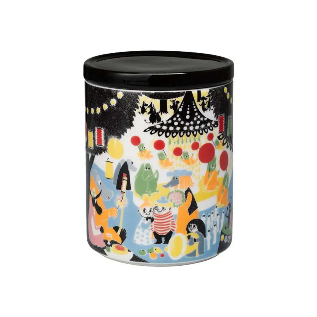 Iittala's Moomin tumbler, Fishing, showcases Snufkin and Too-Ticky fishing on a summery day at a lighthouse island. The illustration is familiar from the summer 2021 Moomin mugs and plates, making these glasses a perfect match for the ceramic seasonal tableware. The Moomin tumblers hold 7.44 fl oz (2.2 dl) and follow the shape designed by Kaj Franck for the iconic Kartio series. Sturdy and easy to handle, these drinking glasses are suitable for both younger and older friends of the Moomin family.