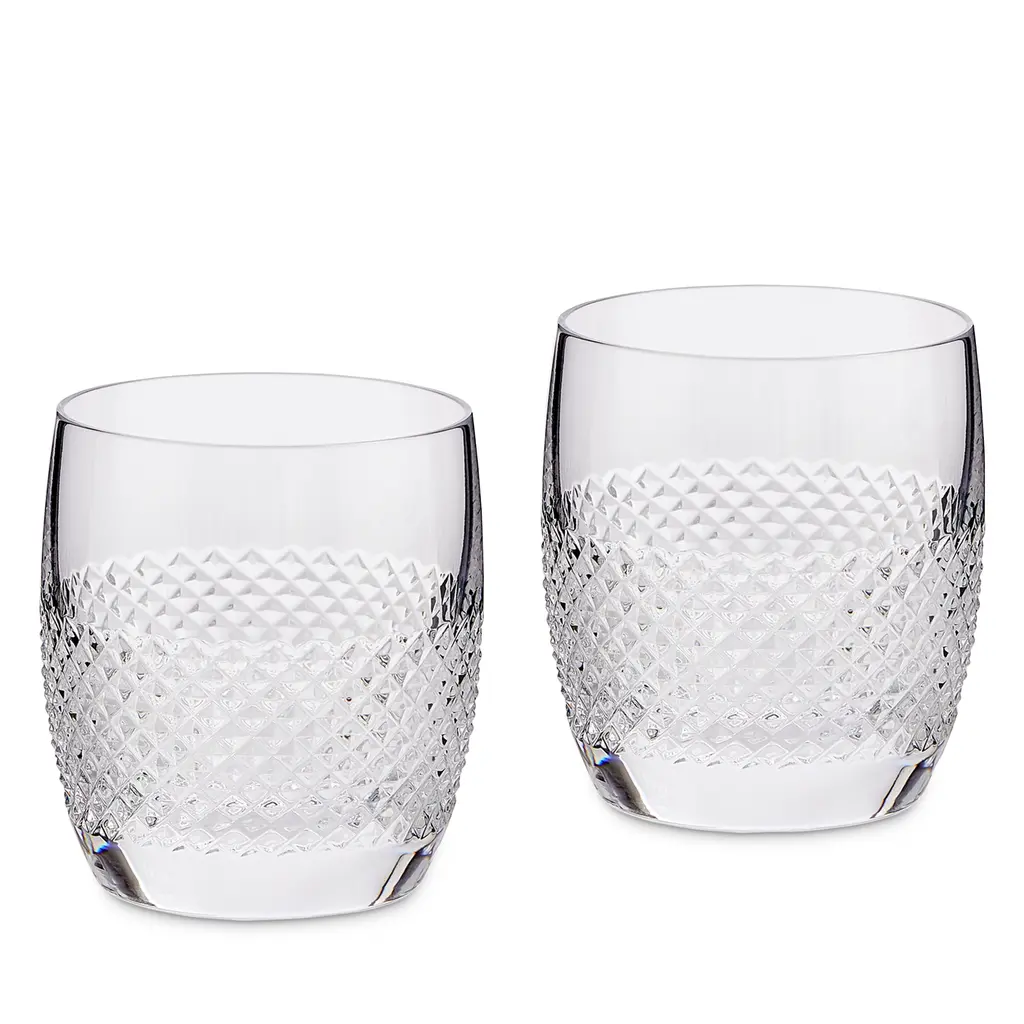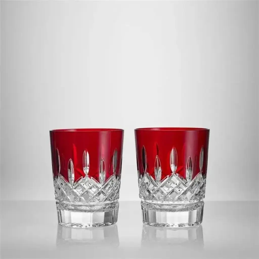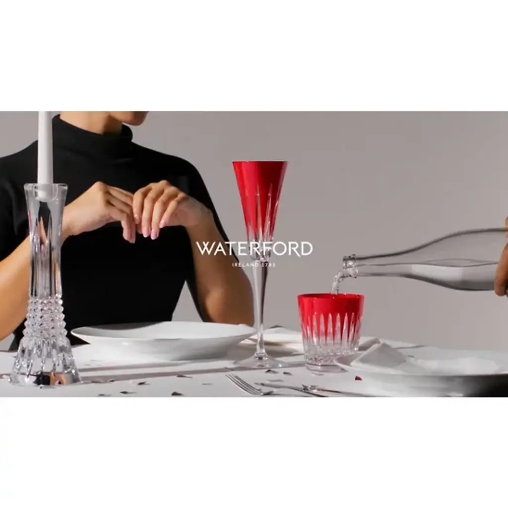 The New Year Firework Tumblers, Set of 2 from Waterford features linear cuts against scarlet red crystal for celebratory gatherings. This pair belongs to the brand's Firework collection, where geometric patterns meet opaque glass to create festive drinkware. The dynamic cutting technique produces visual depth across each tumbler's surface. Packaged in a signature Waterford presentation, this set offers a refined way to raise a glass.