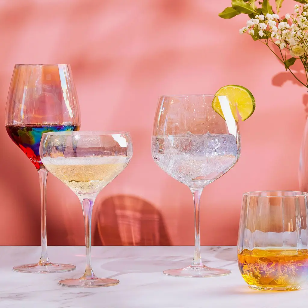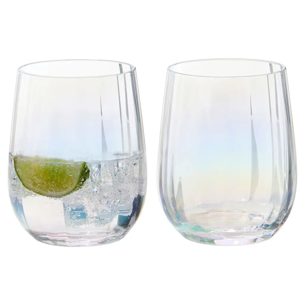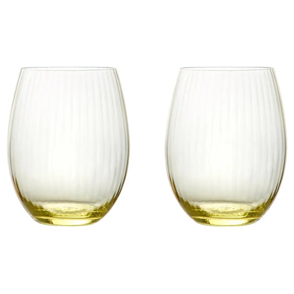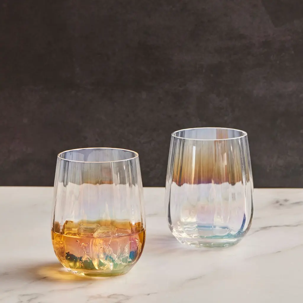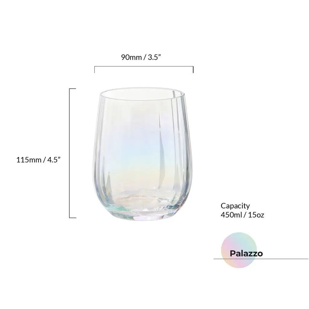 The Palazzo Double Old Fashioned Tumblers / Stemless Wines are the perfect way to add a touch of style and sophistication to your drink. With their elegant shape and pearl colored finish, they are a sophisticated addition to any occasion. The wide, open optic running vertically on each bowl creates a beautiful effect that adds a touch of elegance to your drink. Handmade by skilled craftsmen, these glasses are the perfect way to impress your guests and elevate your table.