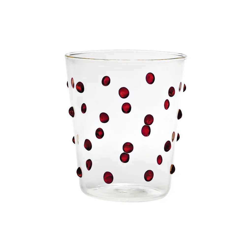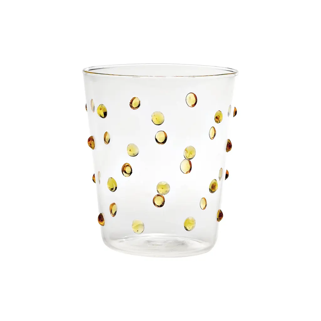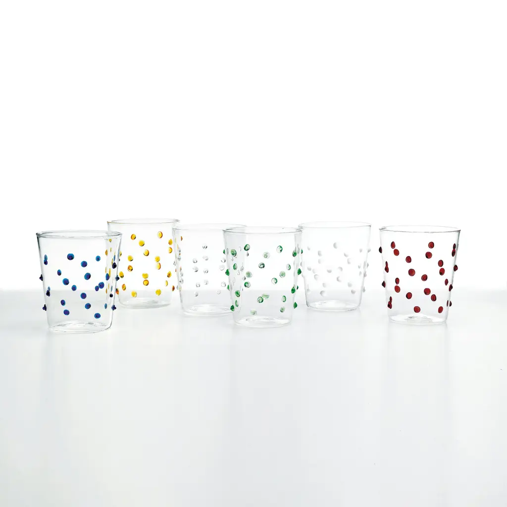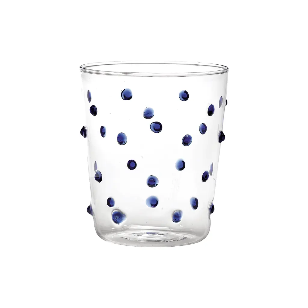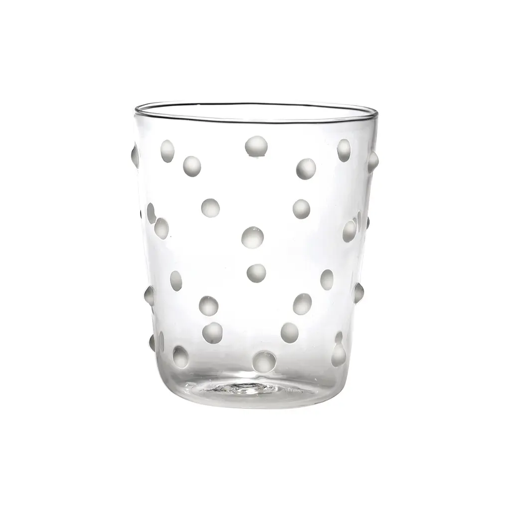 A simple glassware design that makes a lasting impression, the Party Tumbler Glass from Zafferano brings unexpected beauty to any table setting to your home. Handcrafted from borosilicate glass, these tumbler glasses are the perfect size for fresh squeezed juice in the morning or a lively cocktail in the evening. Accented by three dimensional orbs, this simple, yet sophisticated tumbler is ready to elevate your everyday mealtimes or accent your barware collection with classically chic style.Highlights