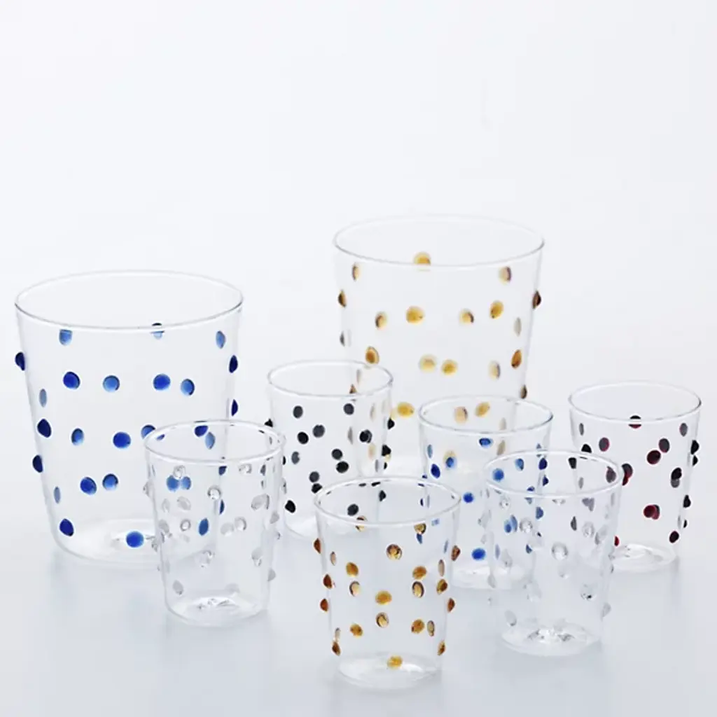 The Party Tumbler Junior, Set of 6 from Zafferano America brings a playful twist to glassware. These petite tumblers, designed by Federico de Majo, feature a constellation of raised dots across their surface, creating a tactile experience with each sip. The set encourages guests to choose their favorite, turning everyday drinks into extraordinary events. Crafted from durable borosilicate glass, these dishwasher-safe tumblers are ready for countless celebrations.