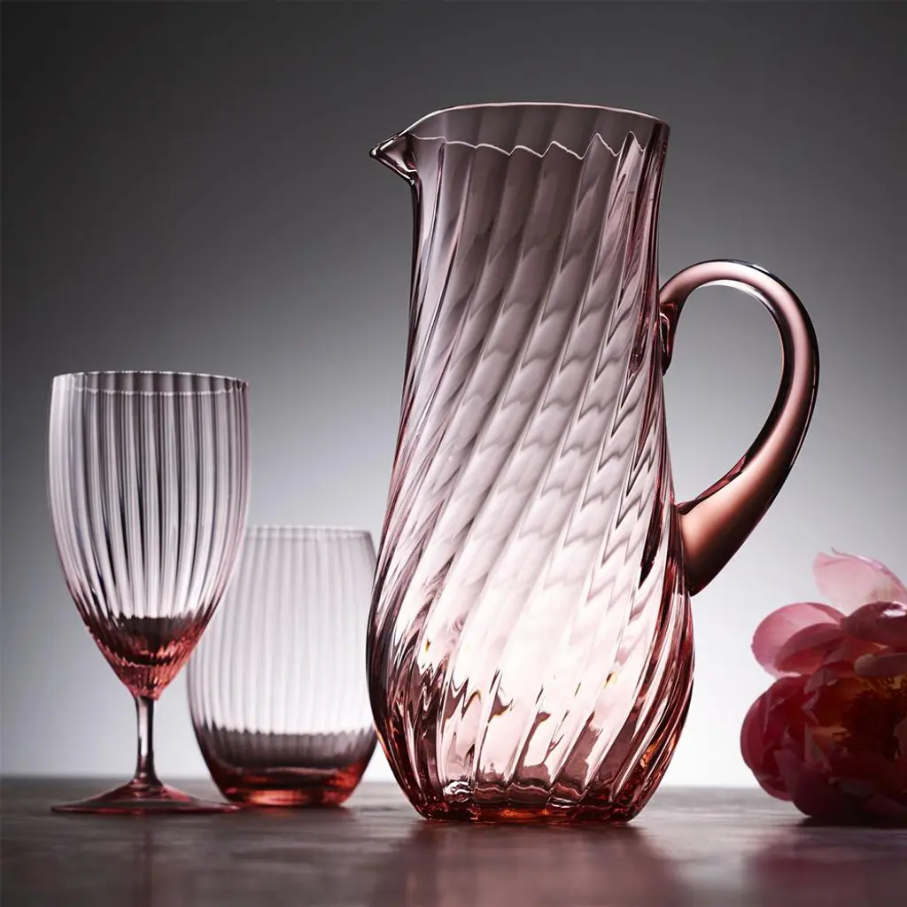 Add some color to your home bar with our Quinn Modern Classic Rose Tumbler Glass. Beautifully crafted from lead-free crystal glass and finished in festive rose pink, this set of designer glasses is mouth-blown from a centuries-old glassworks in the Czech Republic.