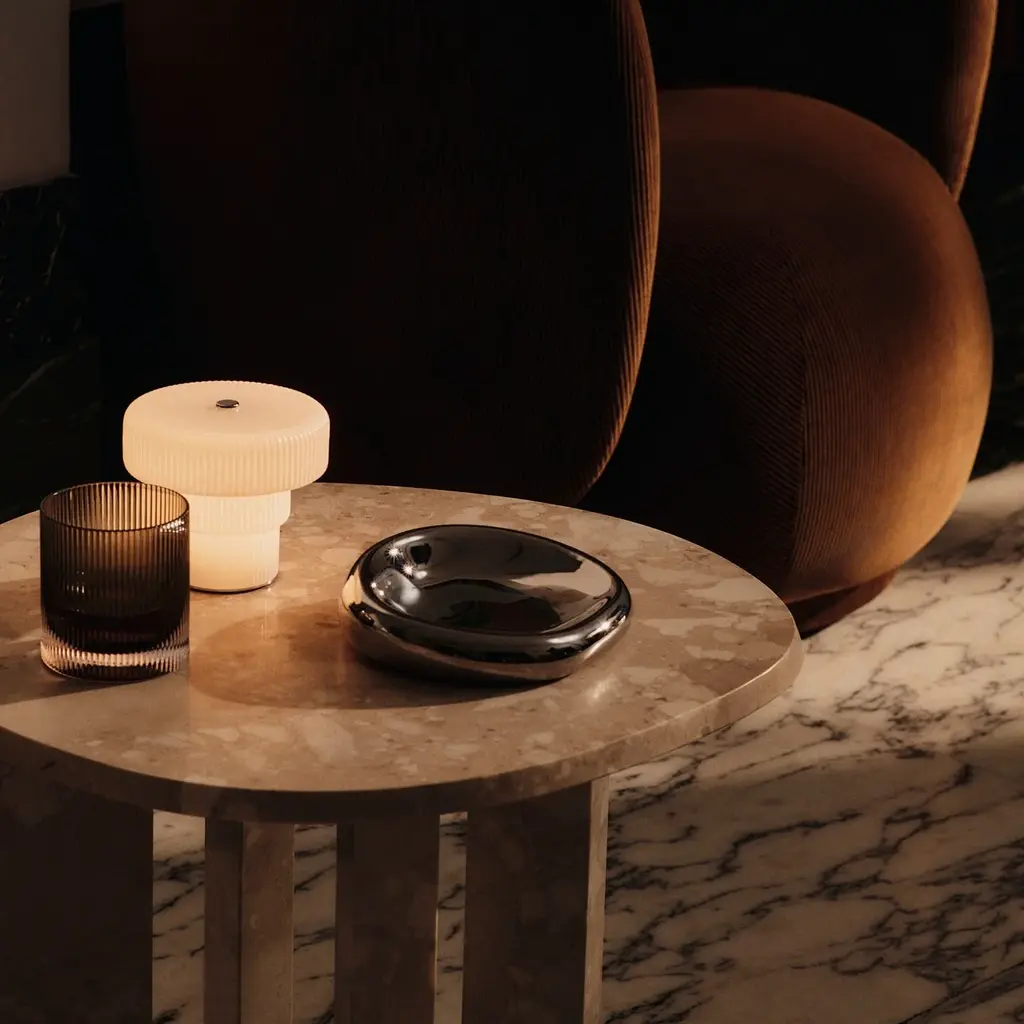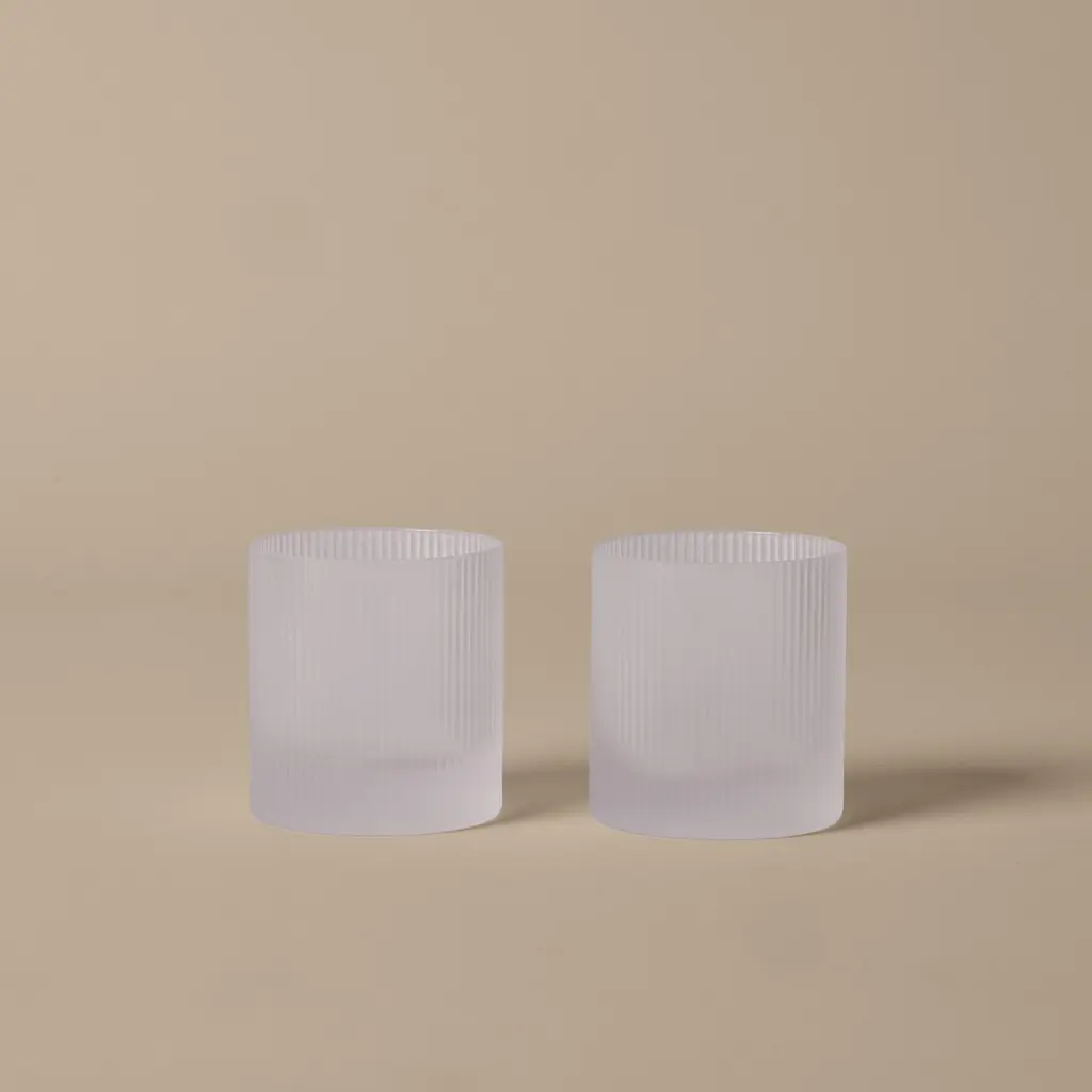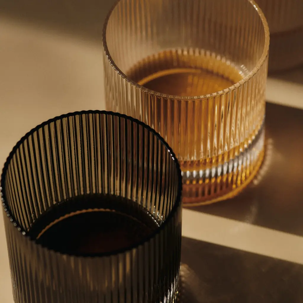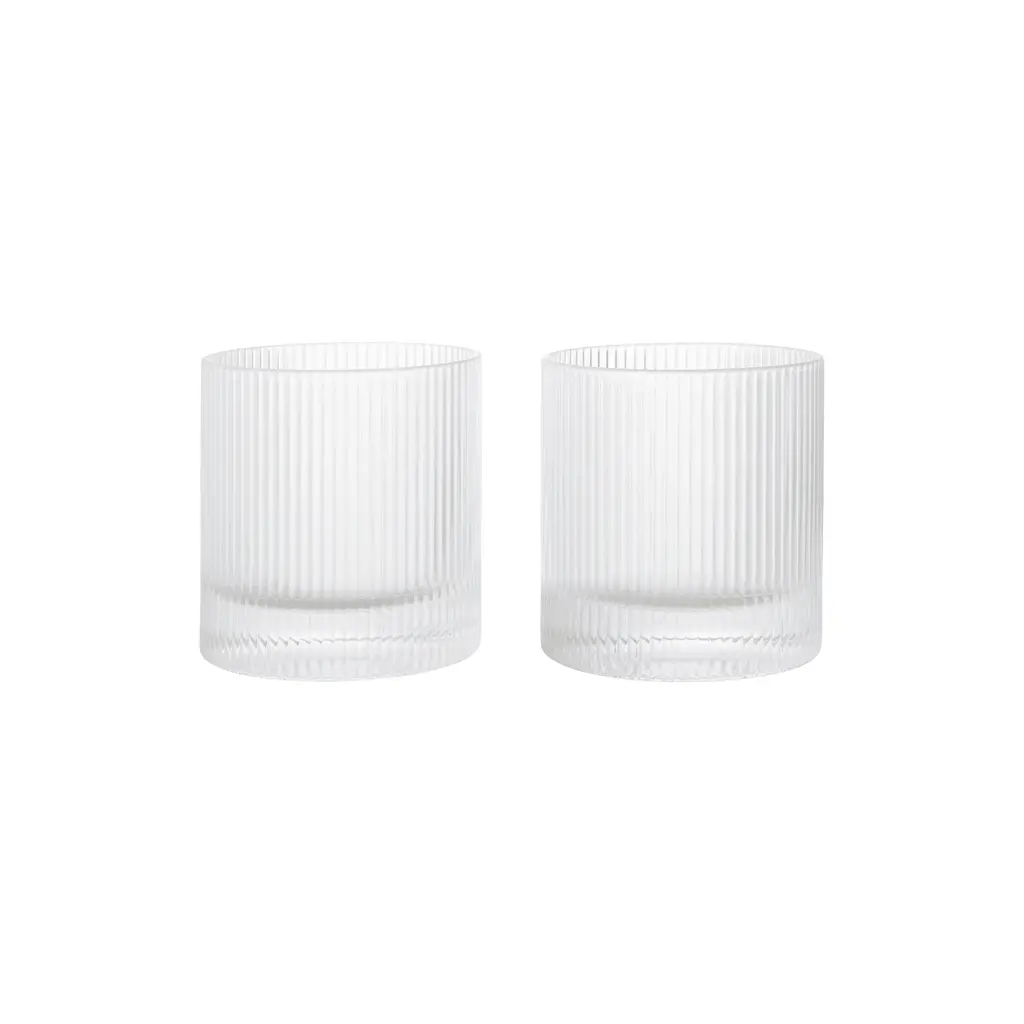 A beautiful and versatile addition to any table setting, the Ripple Tumbler Glasses from Ferm Living are defined by their signature textured surface. Each glass is individually mouth-blown, with a dynamic and sophisticated rippled design that provides a contemporary look and a comfortable grip. The softly rounded shape is perfect for serving everything from water and juice to your favorite cocktails. A fusion of elegant form and everyday function, this set brings a sense of refined, modern style to your drinkware collection. Highlights:
