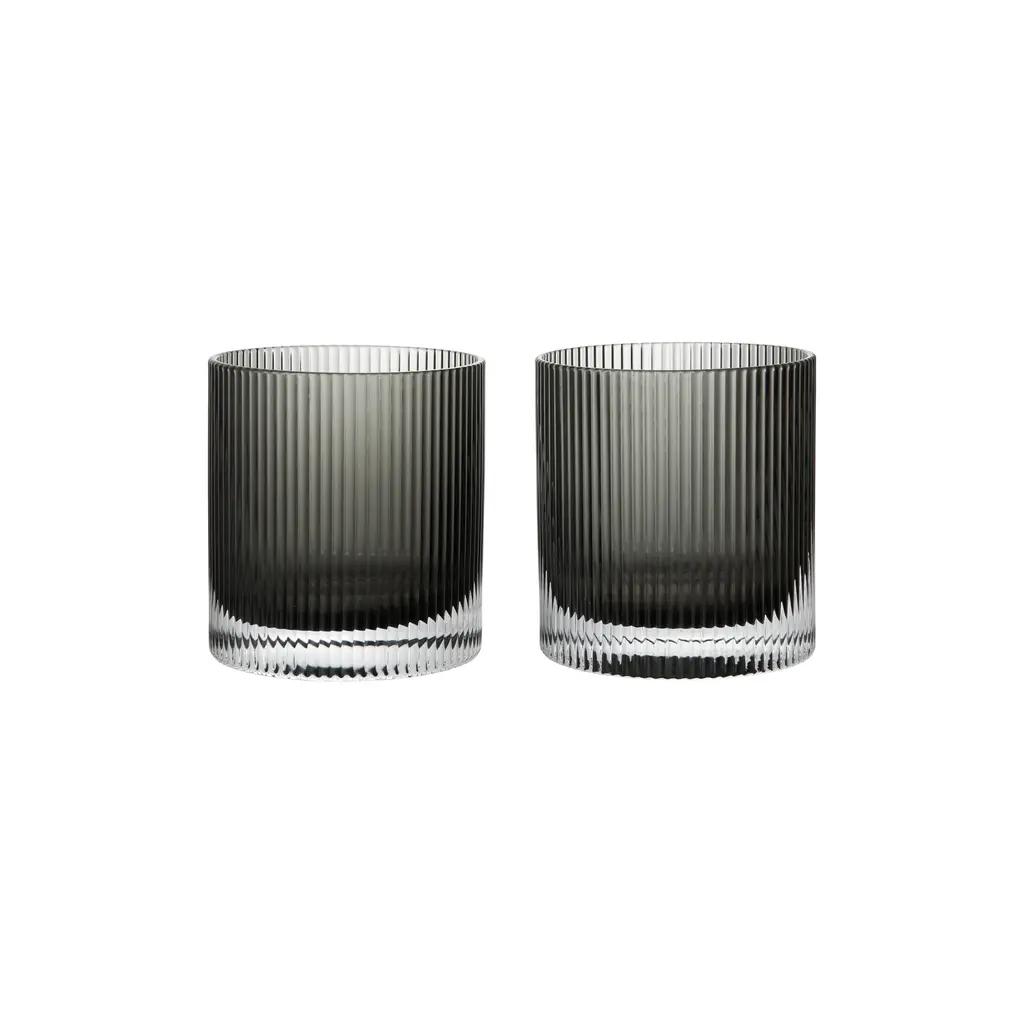A beautiful and versatile addition to any table setting, the Ripple Tumbler Glasses from Ferm Living are defined by their signature textured surface. Each glass is individually mouth-blown, with a dynamic and sophisticated rippled design that provides a contemporary look and a comfortable grip. The softly rounded shape is perfect for serving everything from water and juice to your favorite cocktails. A fusion of elegant form and everyday function, this set brings a sense of refined, modern style to your drinkware collection. Highlights: