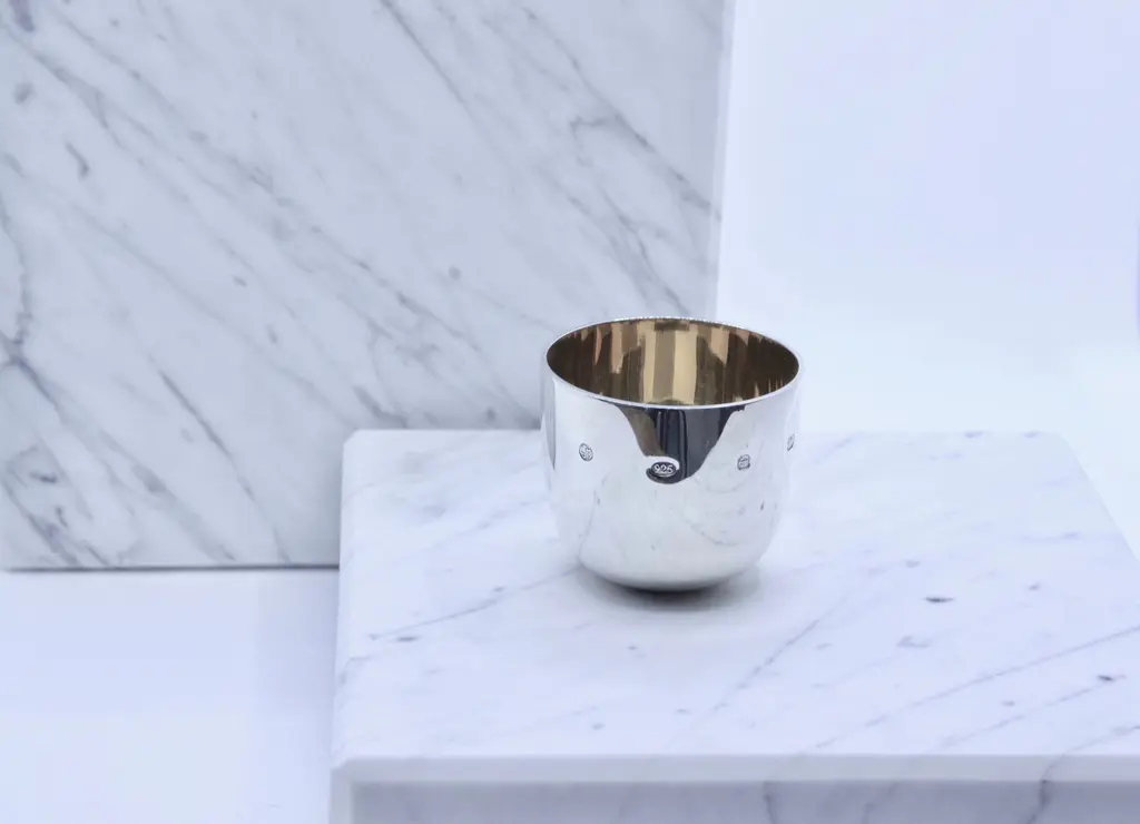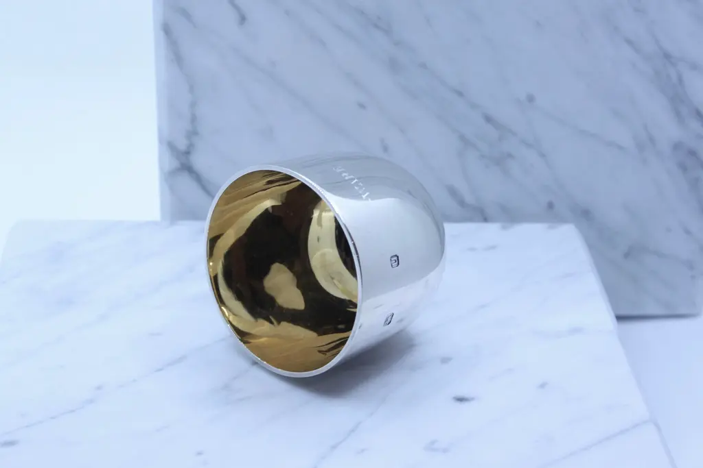 Sterling Silver Tumbler Cup. Either a stand alone objet d'art to sit proudly in a glass cabinet or upon your nightstand collecting rings or to be used vicariously as an elegant vessel for a nightcap.