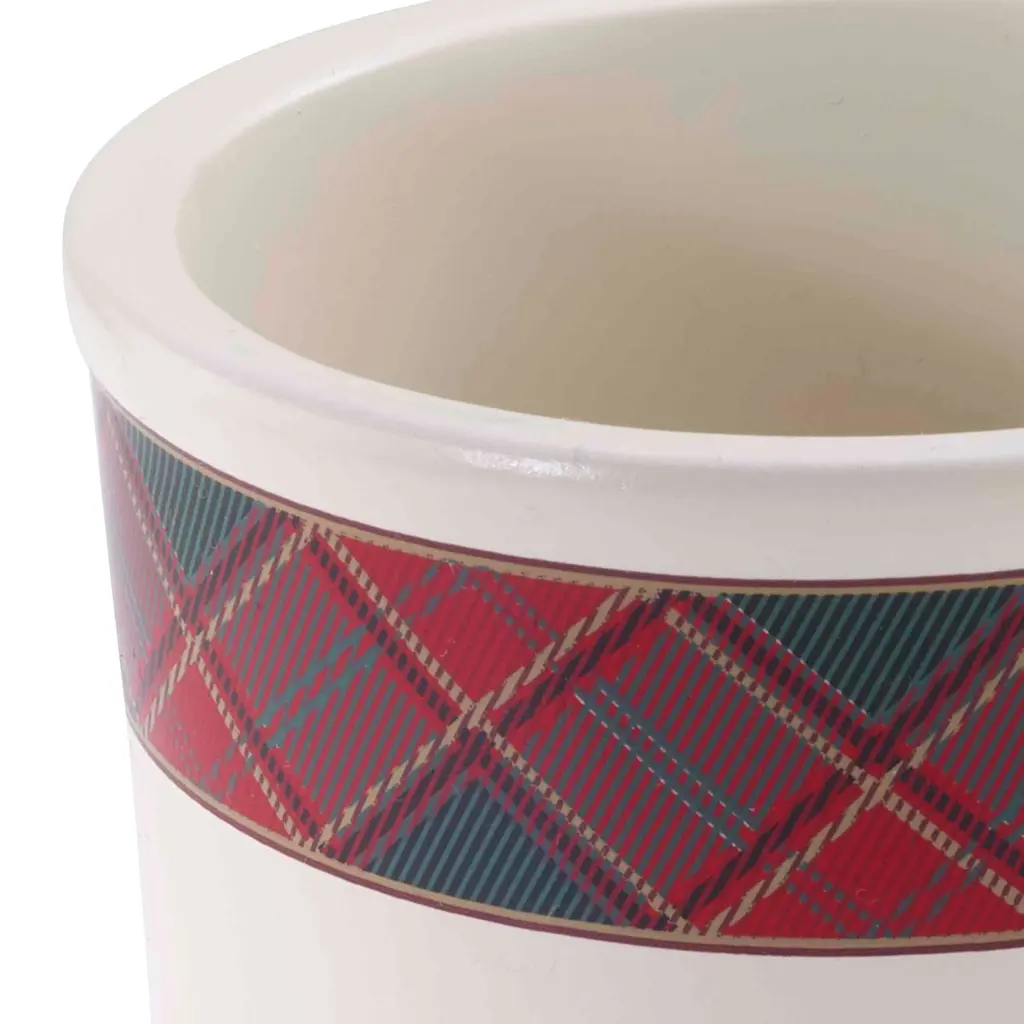 The Spode® Christmas Tree Tartan Tumbler features the iconic Christmas tree with holly leaves, mistletoe on either side on an ivory base with a red and green plaid top border. Made of durable resin with deca . Other coordinating pieces available.