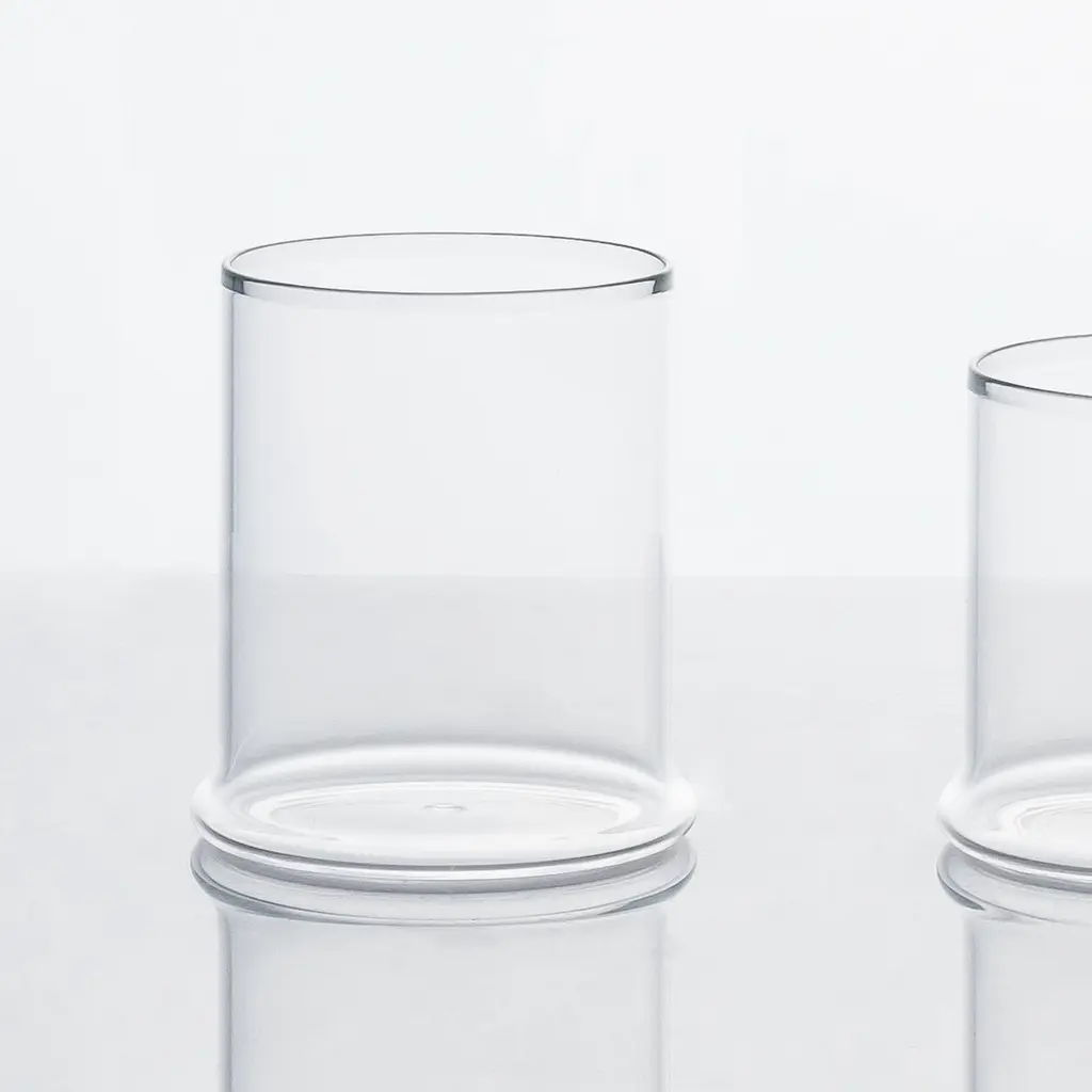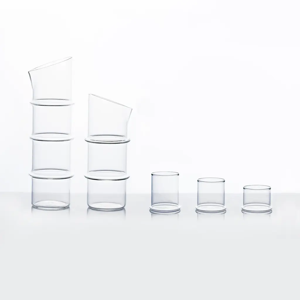 The Take collection draws its inspiration from the shape of bamboo, with each ring on the carafes not only adding a visual element but also serving as a functional measurement marker. These rings indicate different liquid quantities, making the design both aesthetic and practical. The collection extends beyond carafes, including sets of water, wine, and whisky glasses, sold in pairs. Each glass follows the same thoughtful design concept, perfectly complementing the pitchers for a cohesive and elegant table setting.
