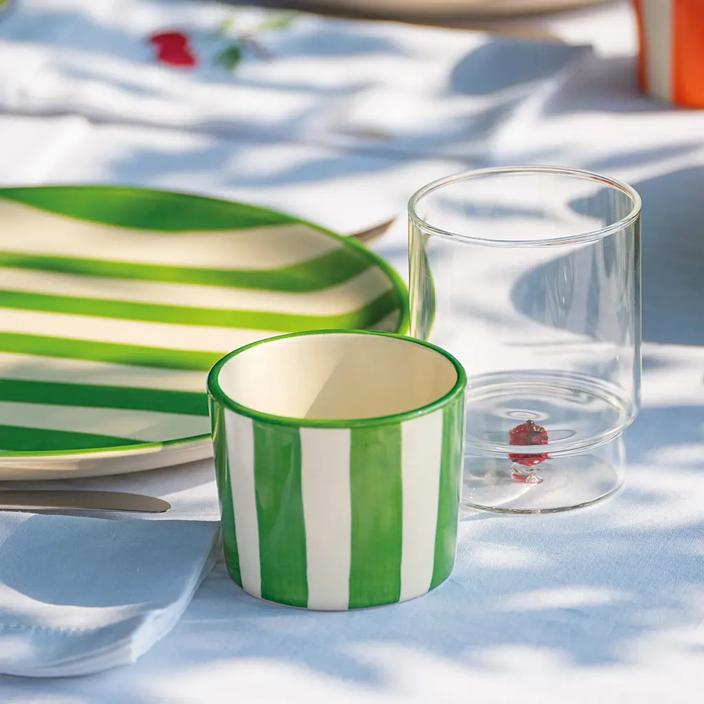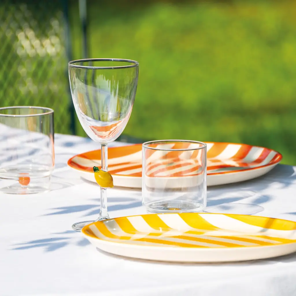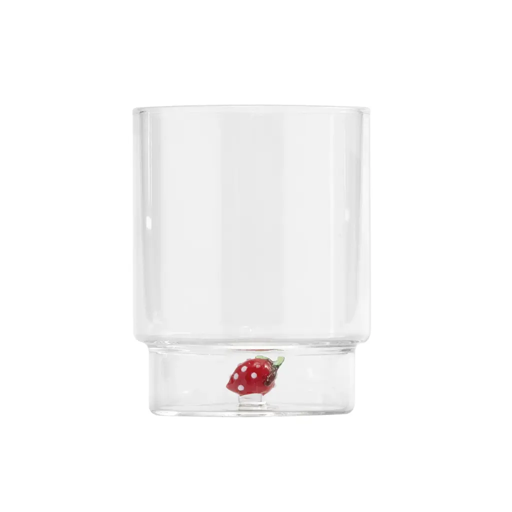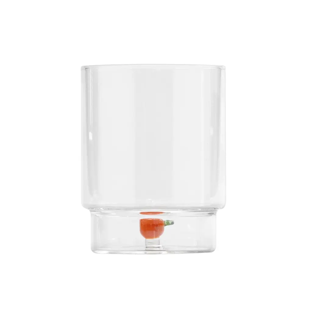 Add a touch of playful charm to your table with the Teca Frutta Tumbler Set from Zafferano. Crafted in Italy from durable borosilicate glass, each tumbler features a unique double-walled base. Safely nestled within is a colorful, handmade fruit decoration, allowing for easy cleaning and worry-free use with ice. With six different fruits, this stackable set lets guests easily identify their glass, blending whimsical Italian design with smart, everyday functionality. Highlights